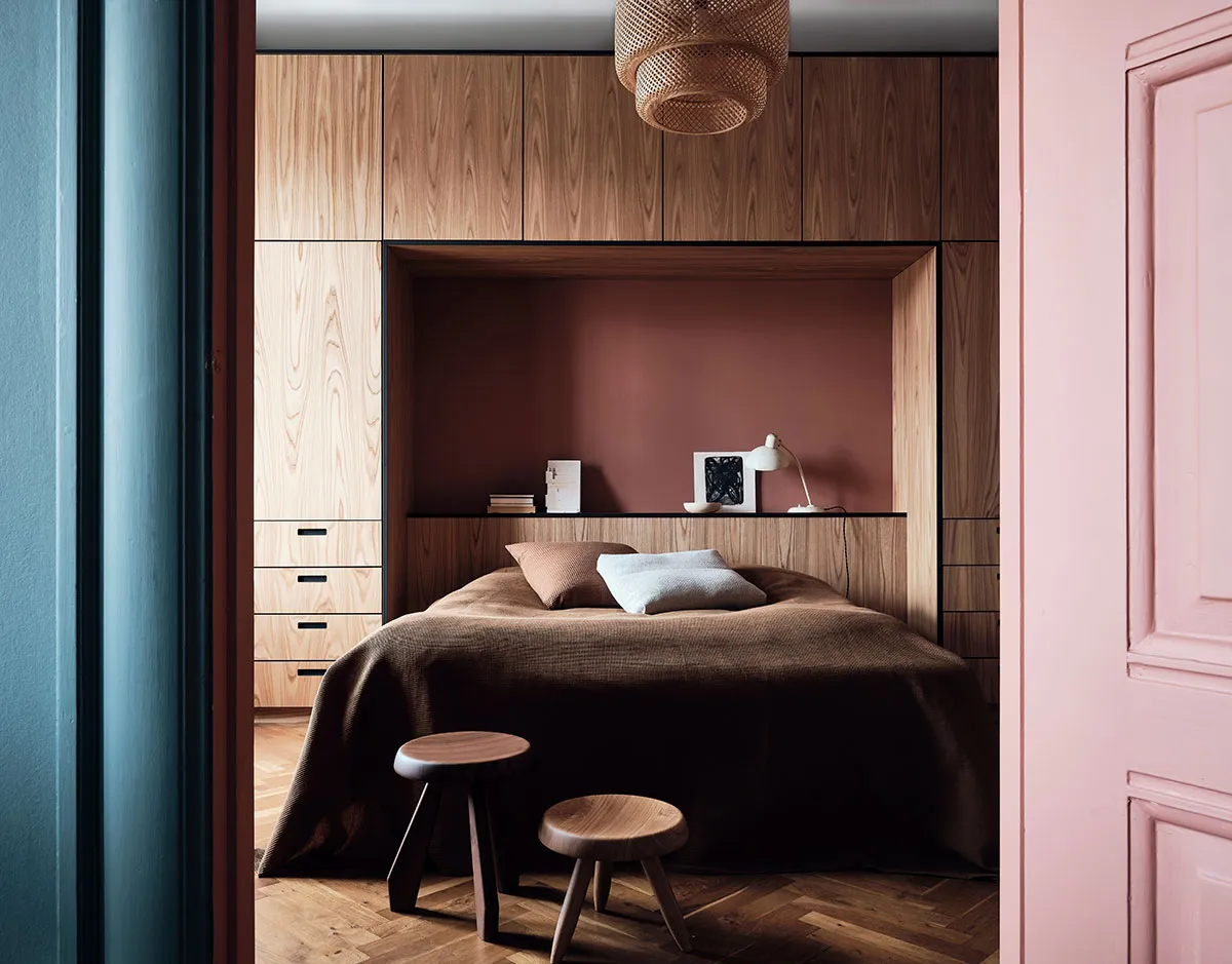 Couleurs audacieuses et design élégant d'un appartement dans un célèbre bâtiment à Copenhague