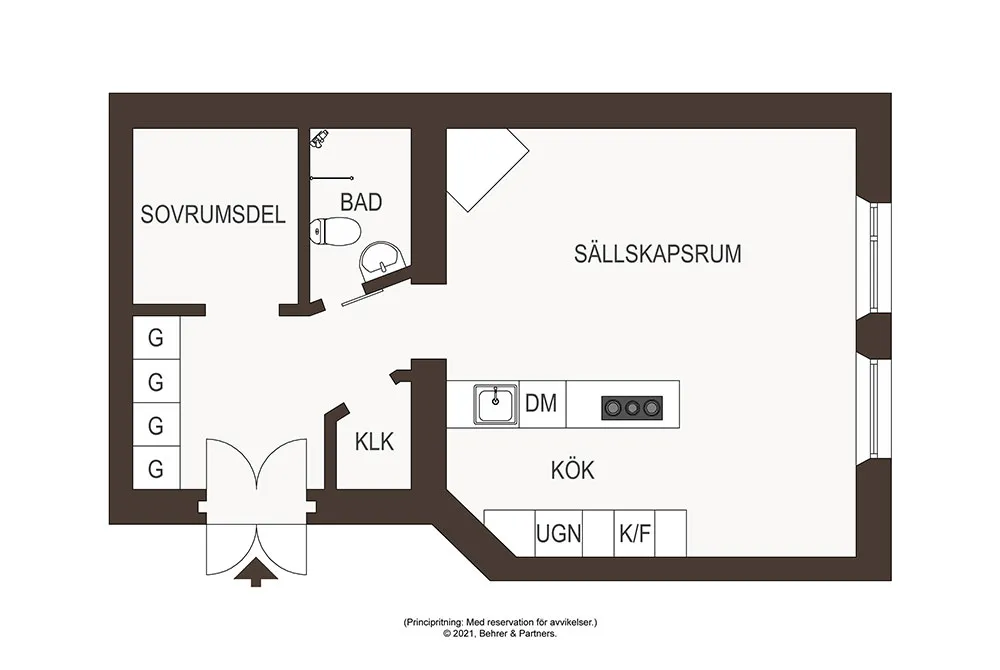 Appartement lumineux de deux pièces, qui semble bien plus grand que sa superficie réelle (47 m²)