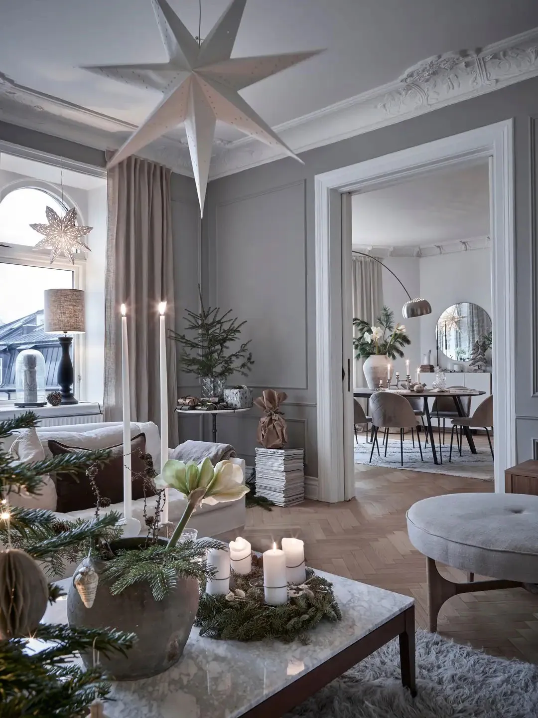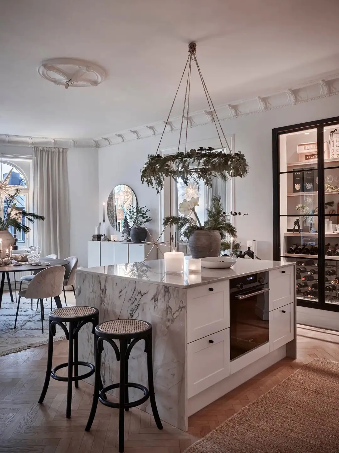 Classique moderne et Noël : un appartement élégant à Helsingborg