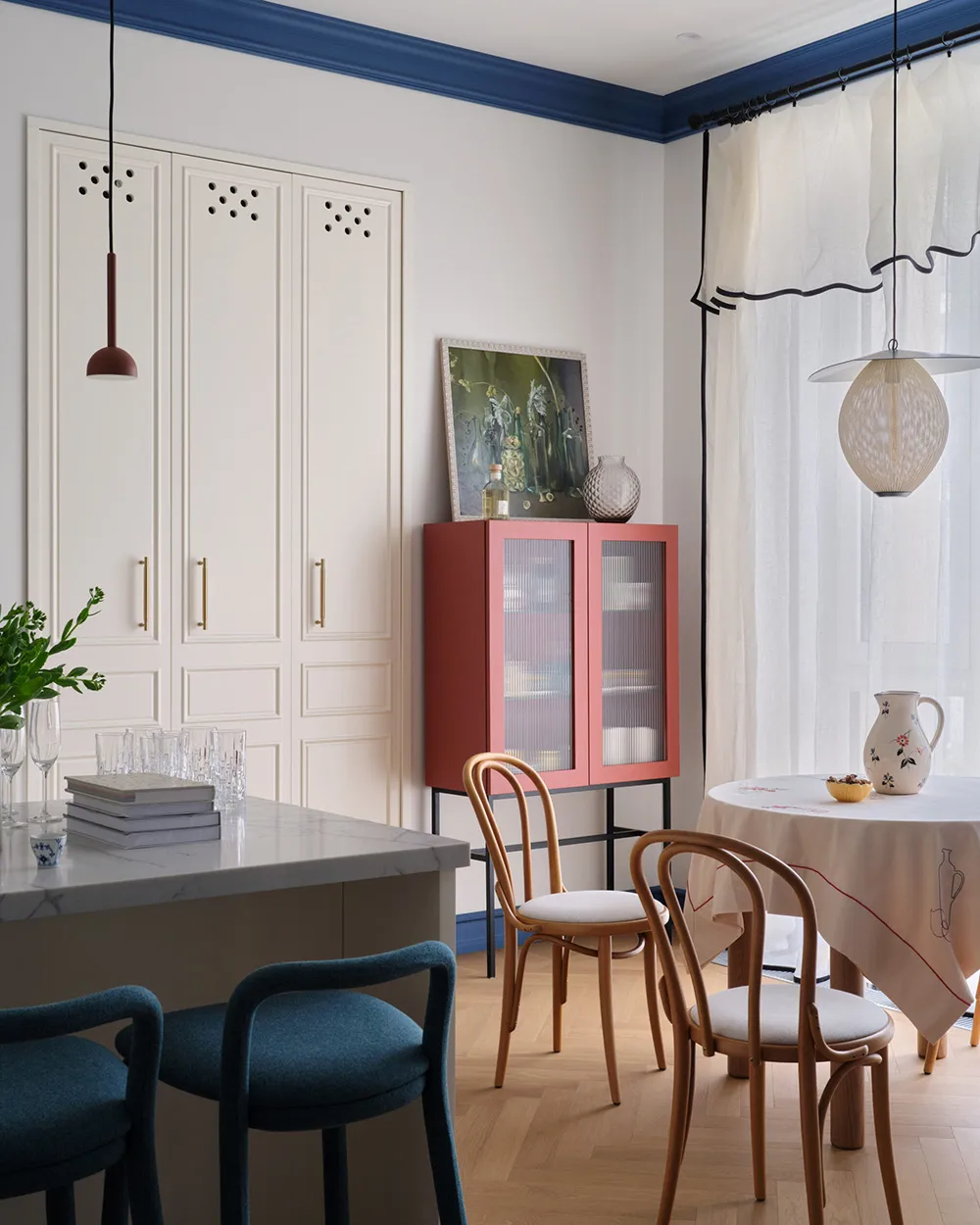 Cet intérieur audacieux et frais d'un des nouveaux Bâtiments résidentiels à Almaty, dans un quartier calme, reflète avec succès le style de vie et les passions de ses propriétaires.