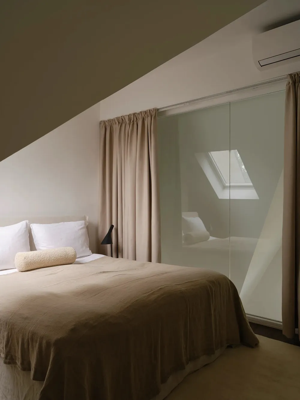 Effets blancs intérieurs avec poutres et vues sur le canal : appartements à Amsterdam