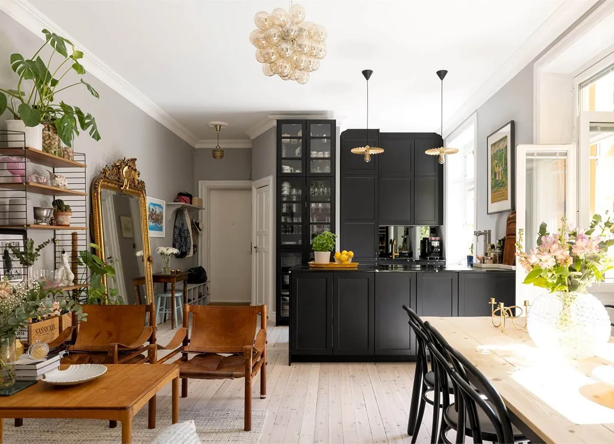 Charming appartement à Stockholm avec cuisine noire et décor charmant (53 m²)