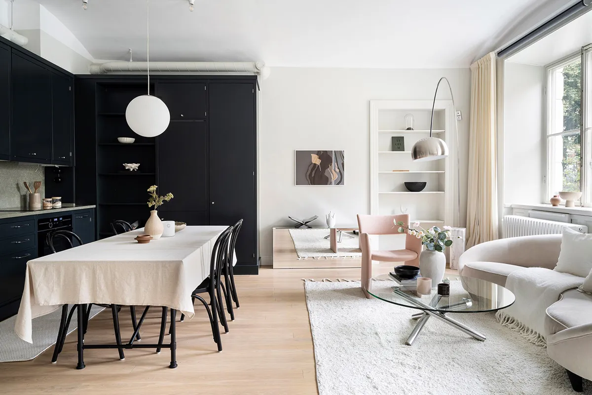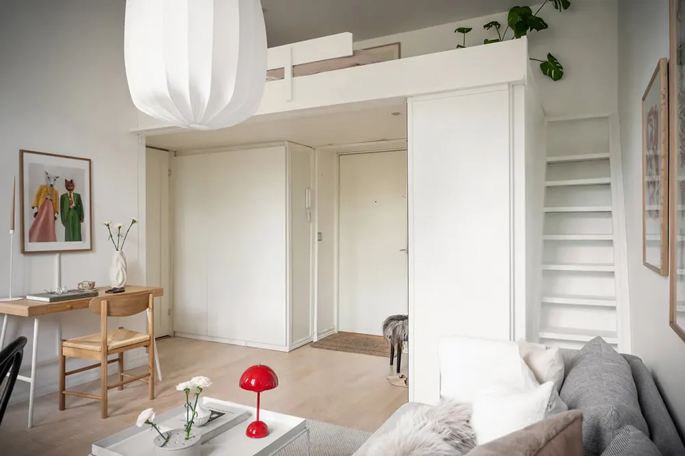 Les designers de cette petite appartement suédoise ont parfaitement réussi leur mission d'optimisation de la lumière et de l'espace.