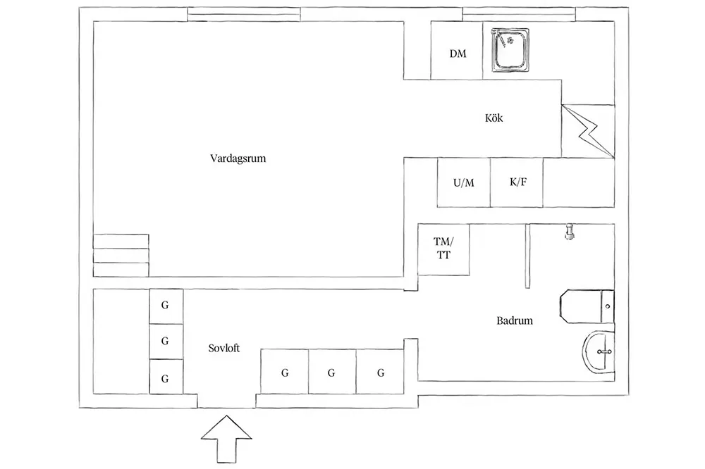 Petite appartement à Götborg avec intérieur doux et mansarde (30 m²)