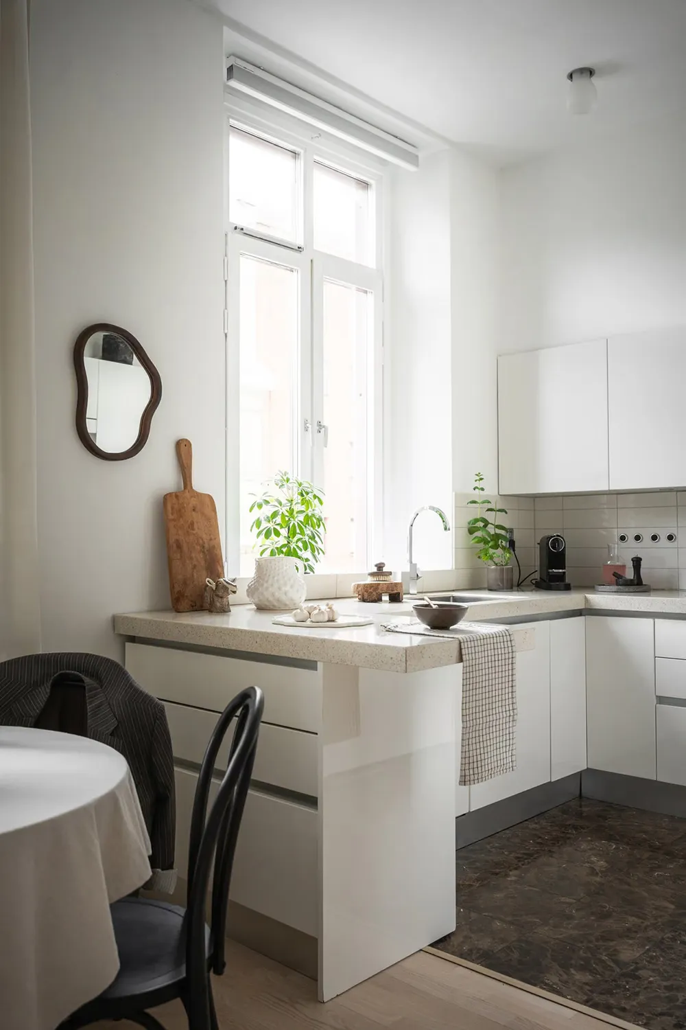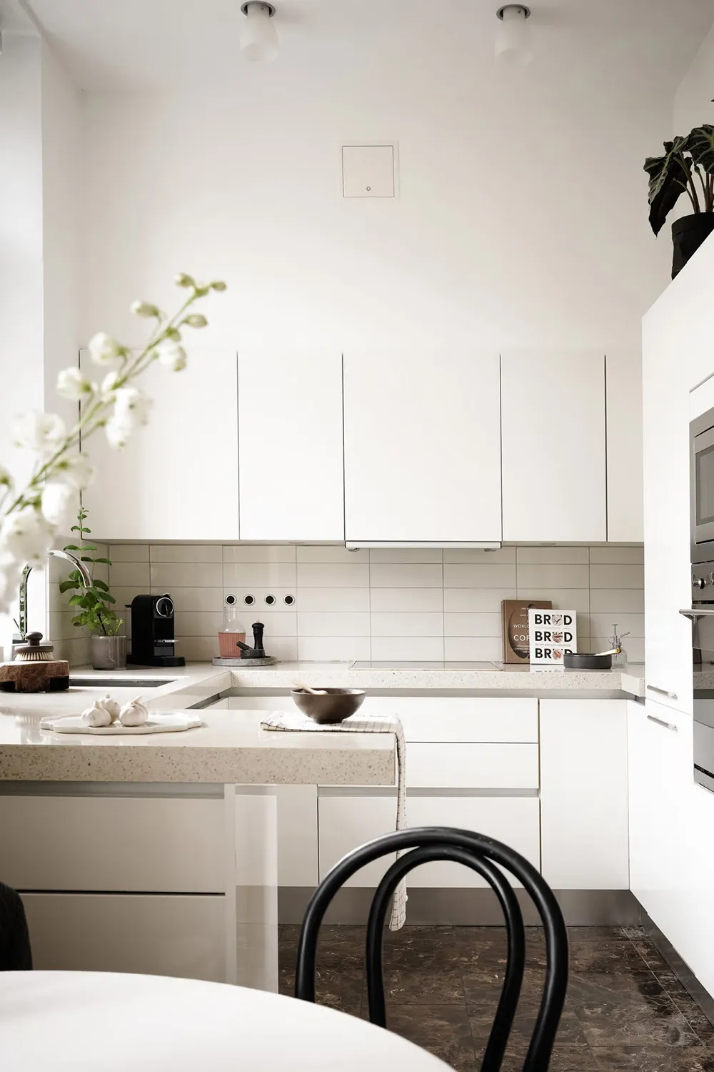 Une cuisine sombre et une cloison élégante : un appartement stylé à Stockholm