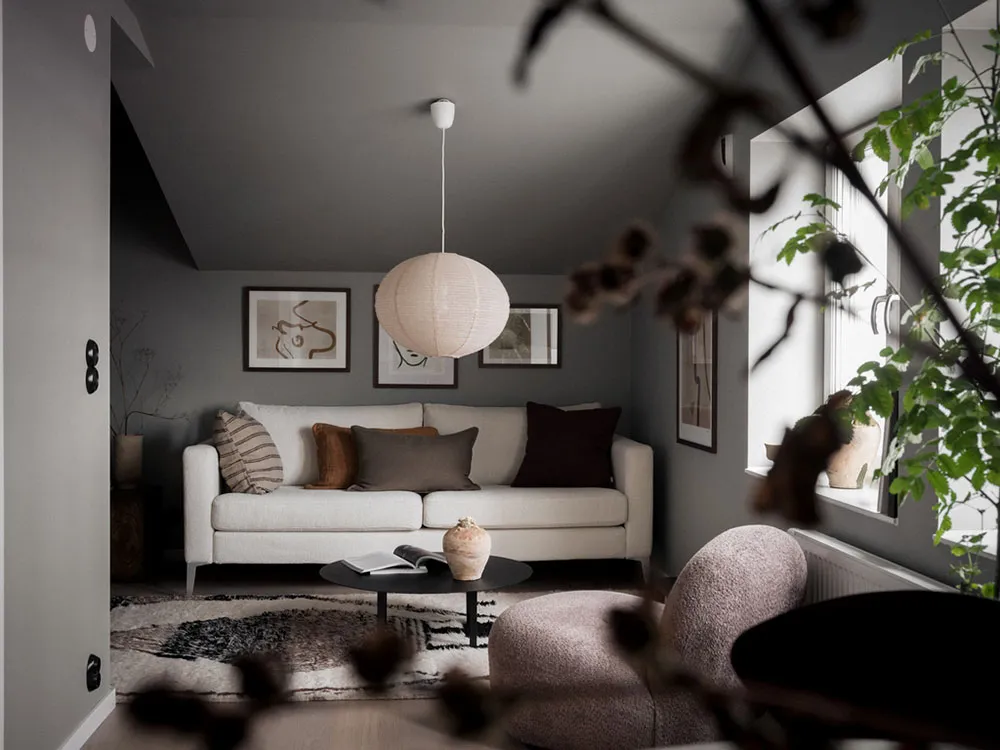 Style moderne et intérieur sombre pour une appartement de mansarde compact (33 m²)