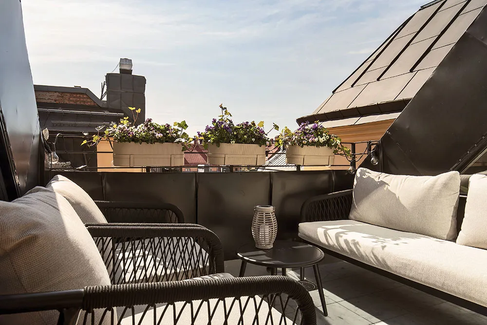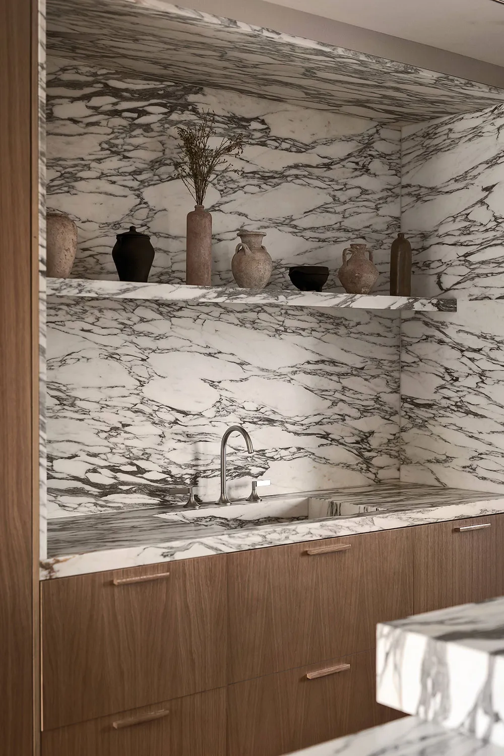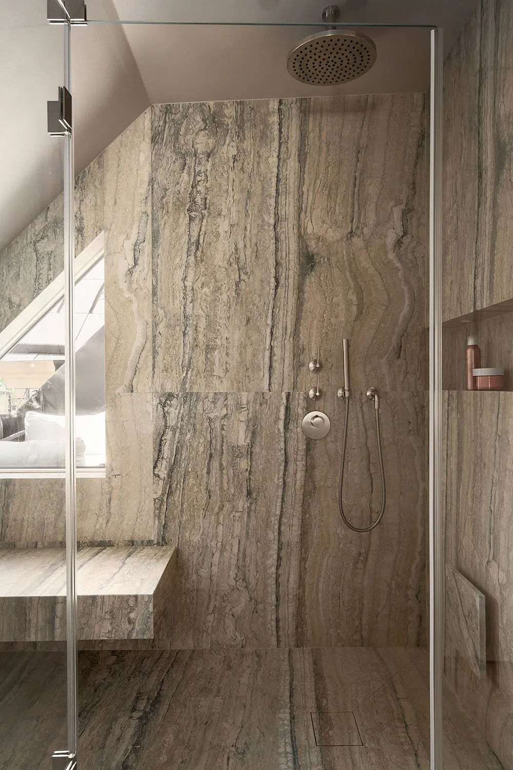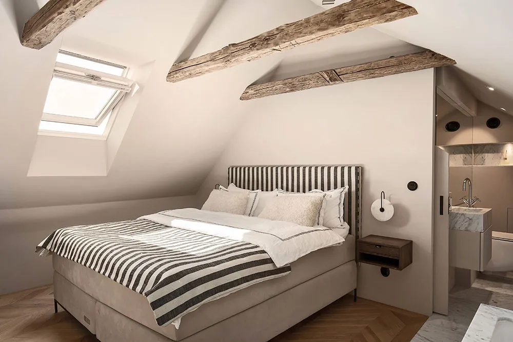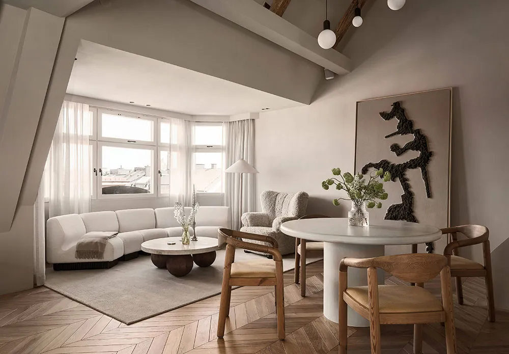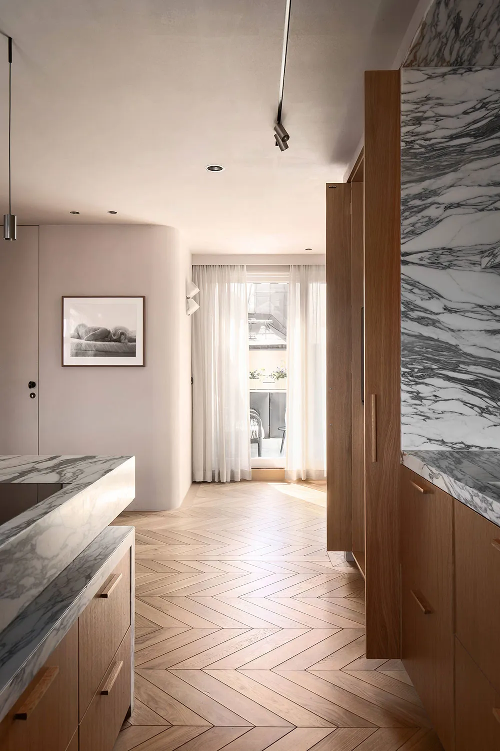 Luxueux marbre dans le design d'une élégante appartement de mansarde à Stockholm