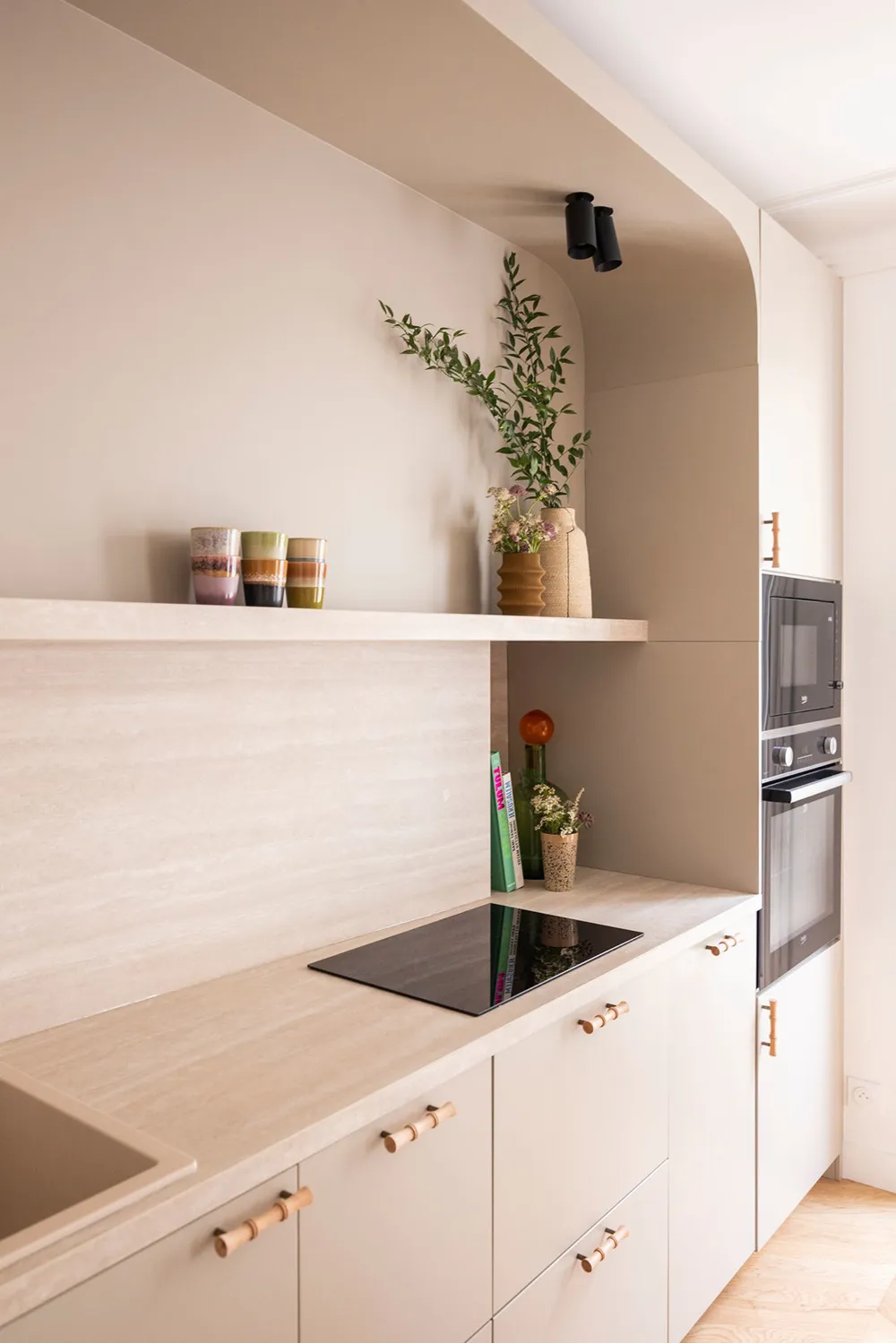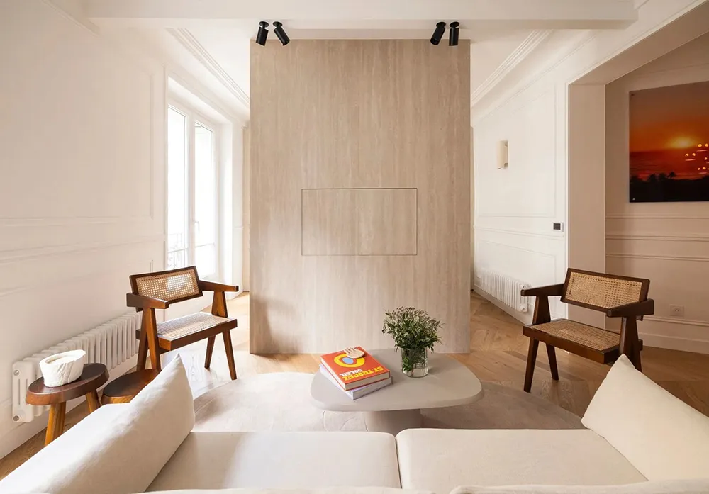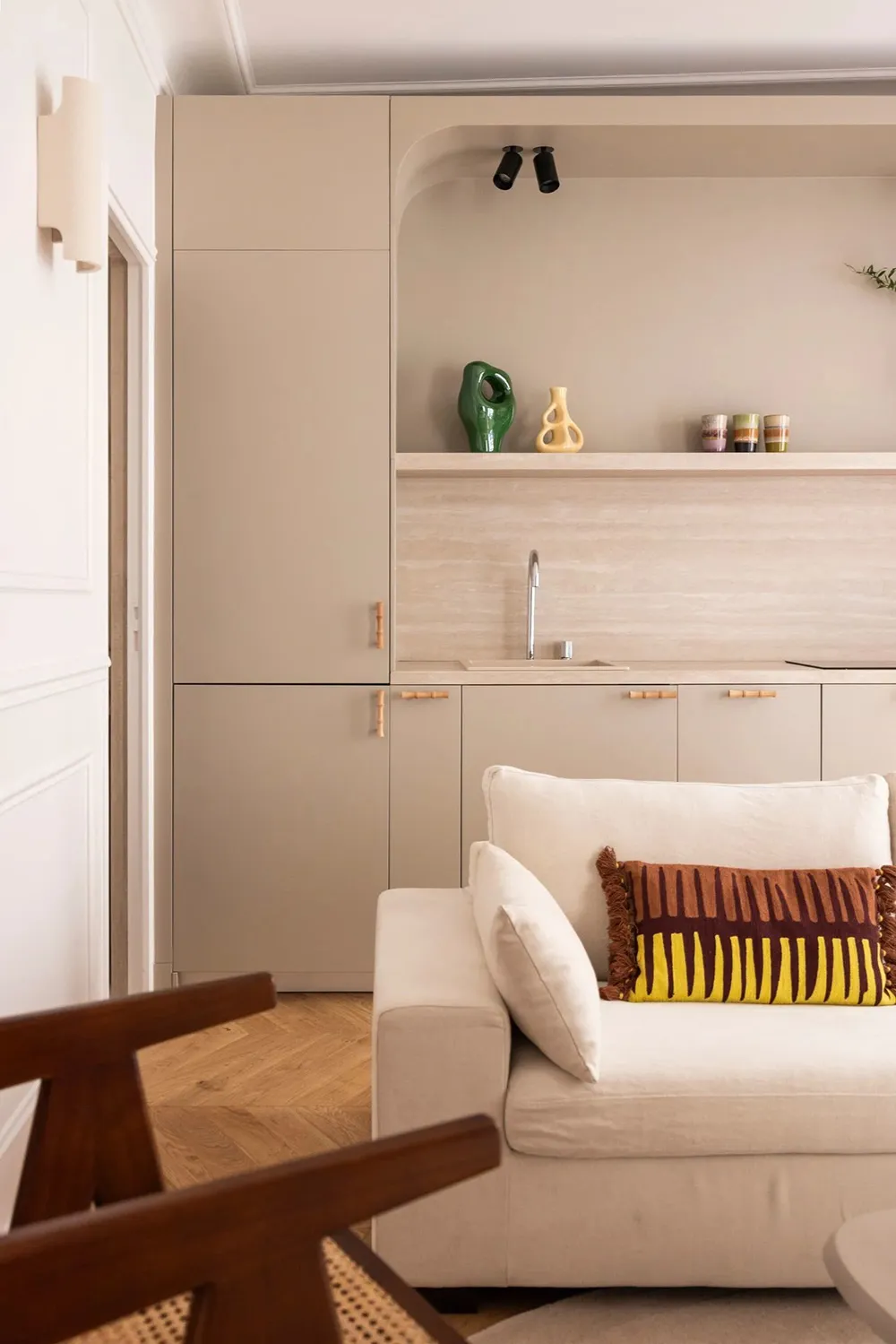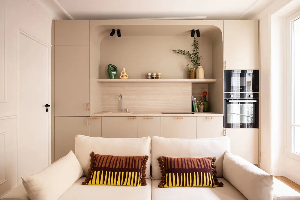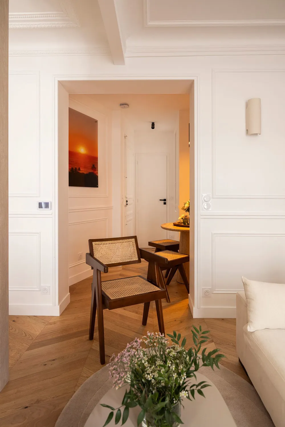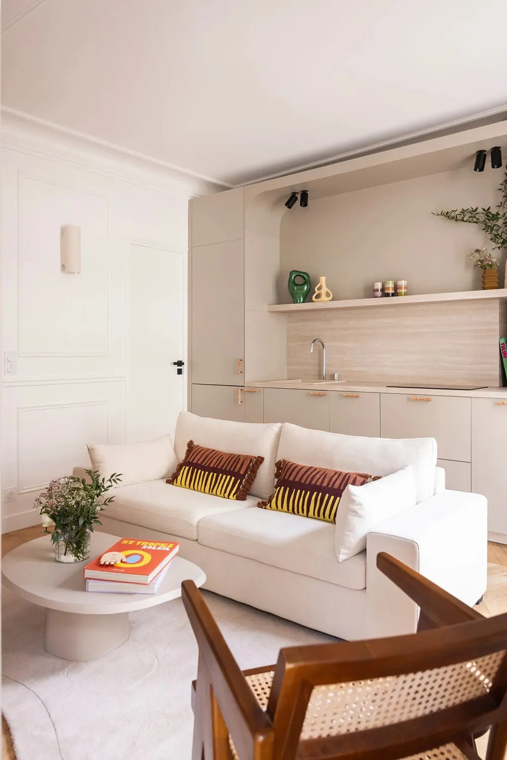 Lorsque le propriétaire de ce petit appartement du 16e arrondissement de Paris a contacté le designer Sarah Benhamou, il souhaitait redéfinir l'intérieur et créer un espace moderne léger rappelant une chambre d'hôtel.