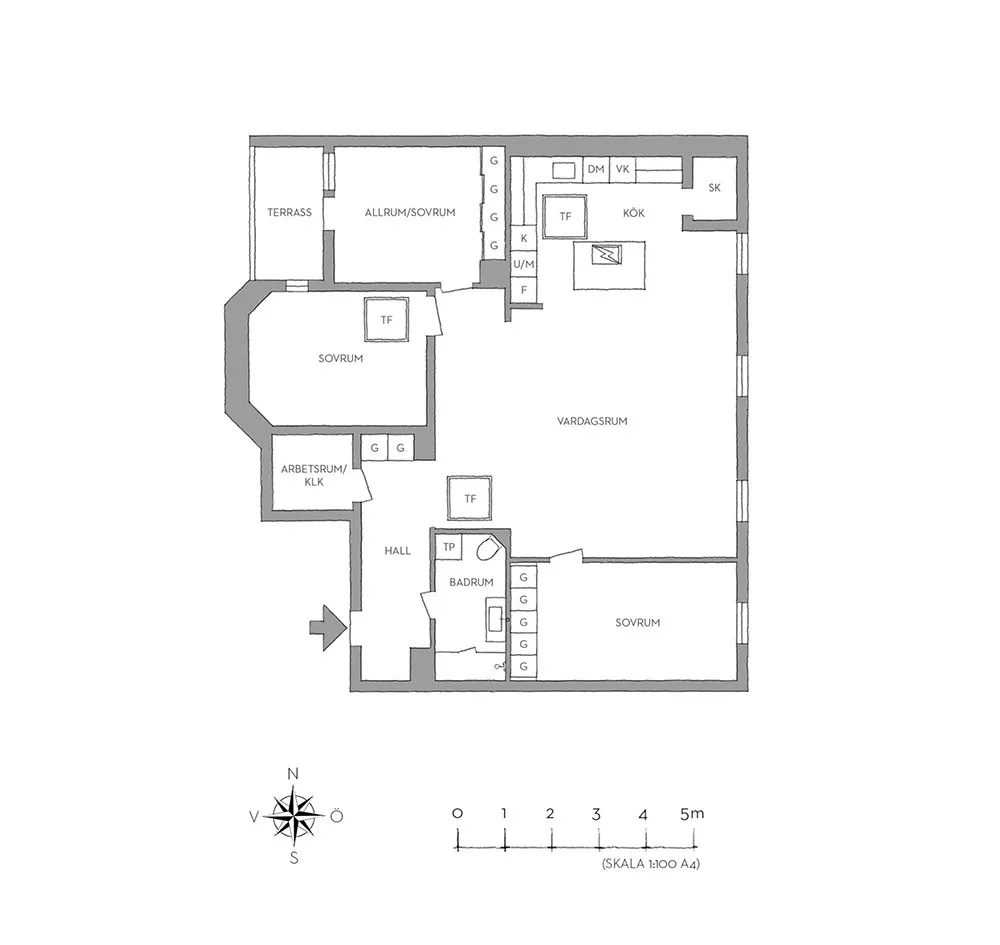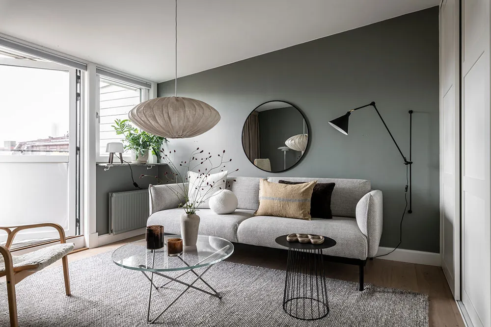 Appartement à deux pièces en Suède dans des tons sombres (57 m²)