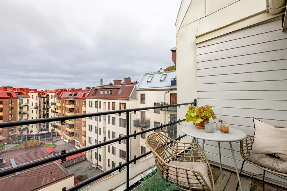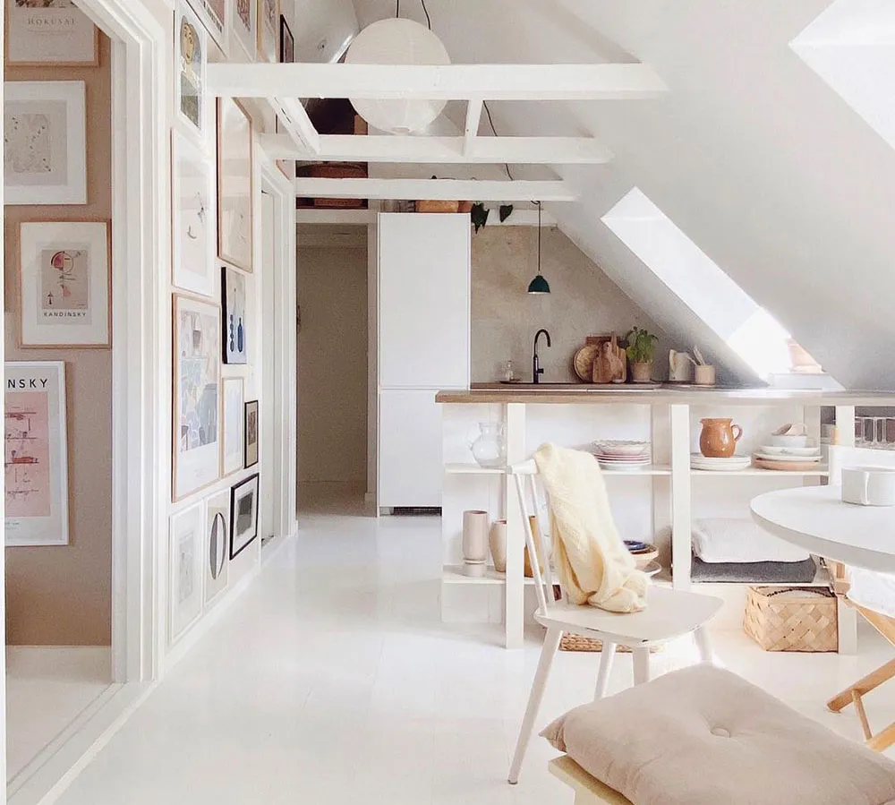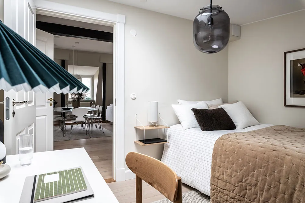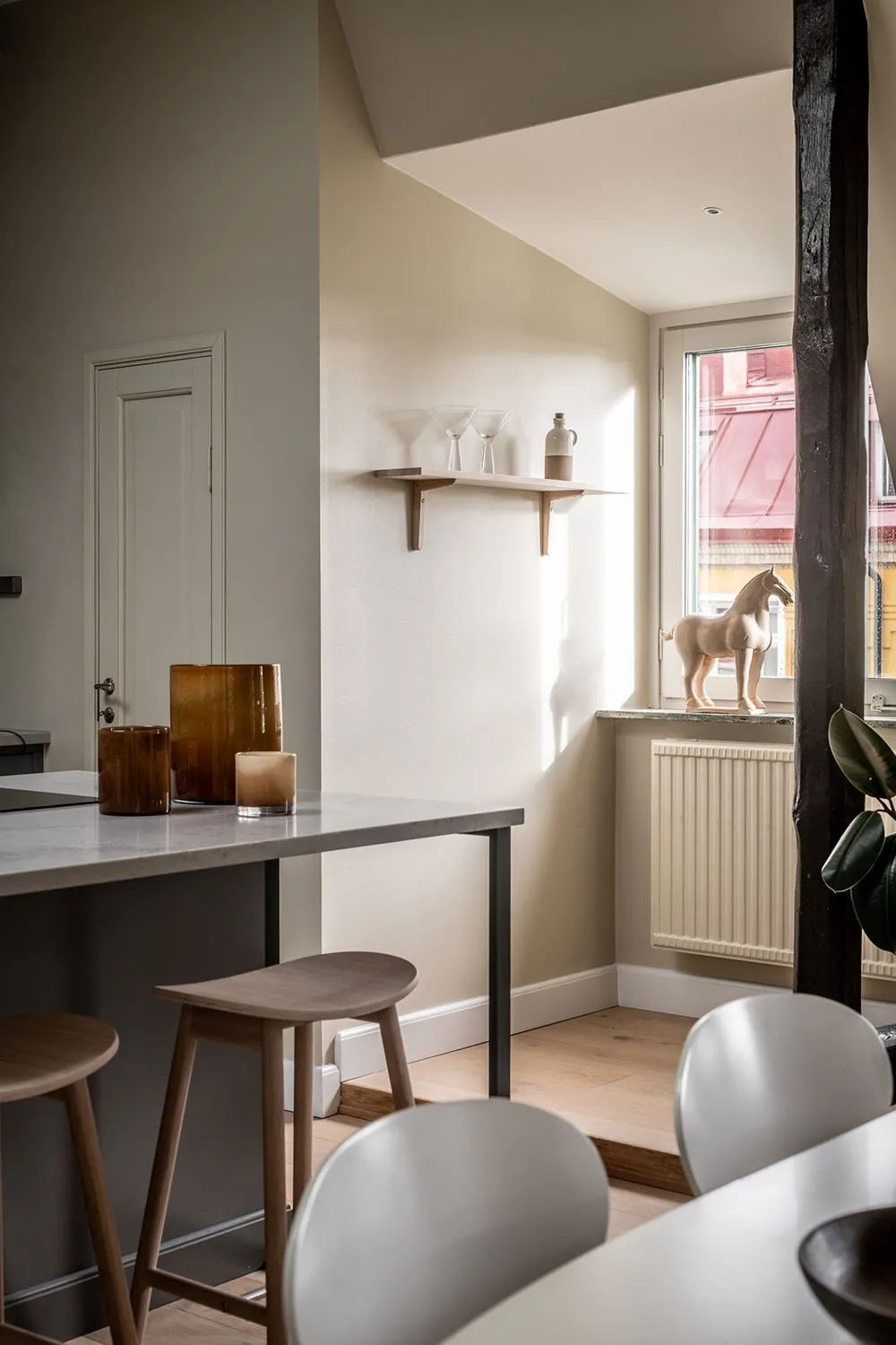 Intérieur chaleureux et élégant d'une grande mansarde à Göteborg