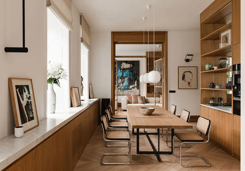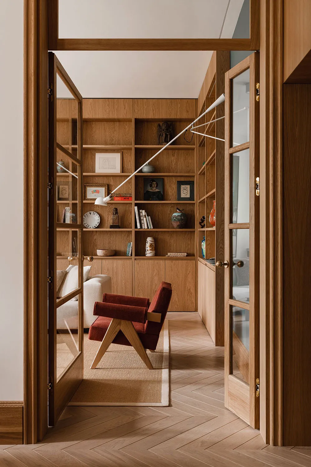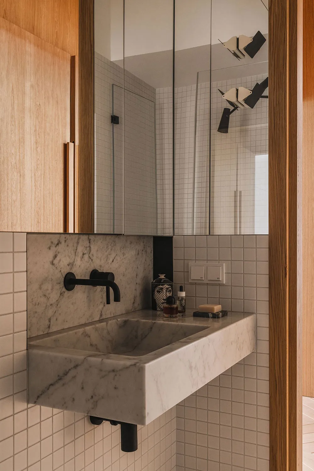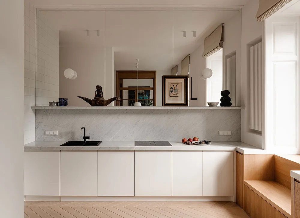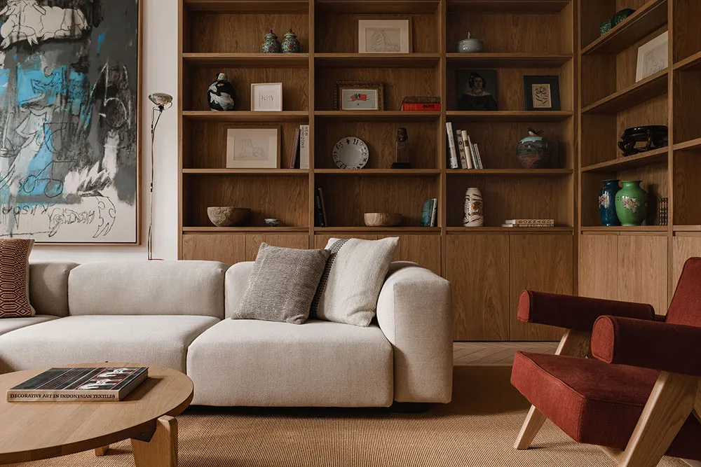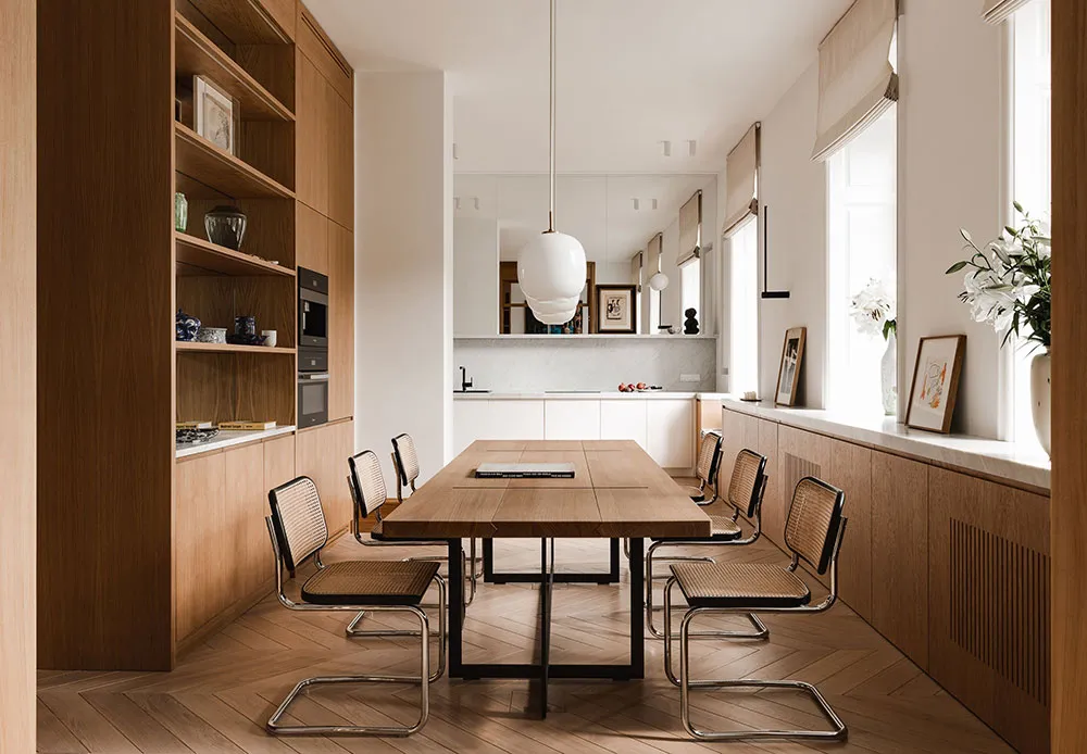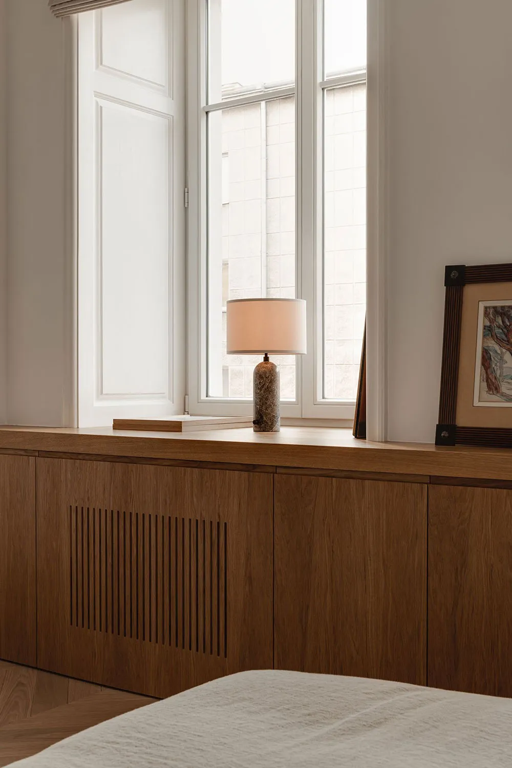 Modernité élégante et accents mid-century : un appartement beau dans un ancien bâtiment à Varsovie