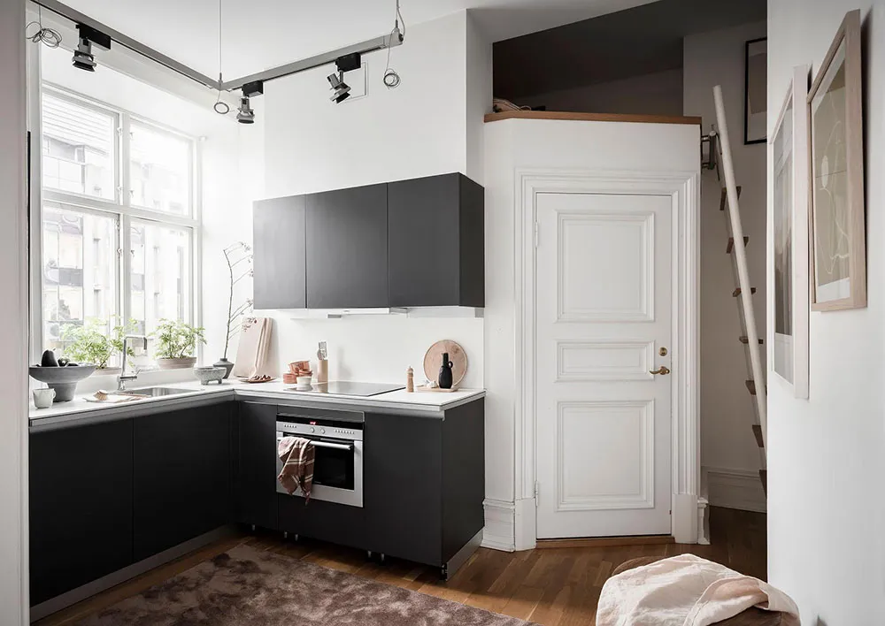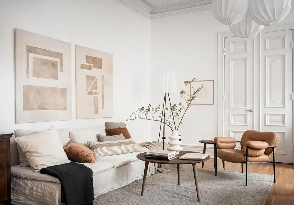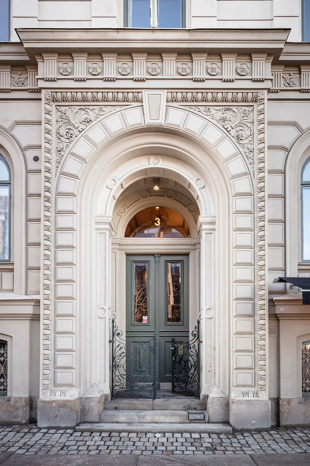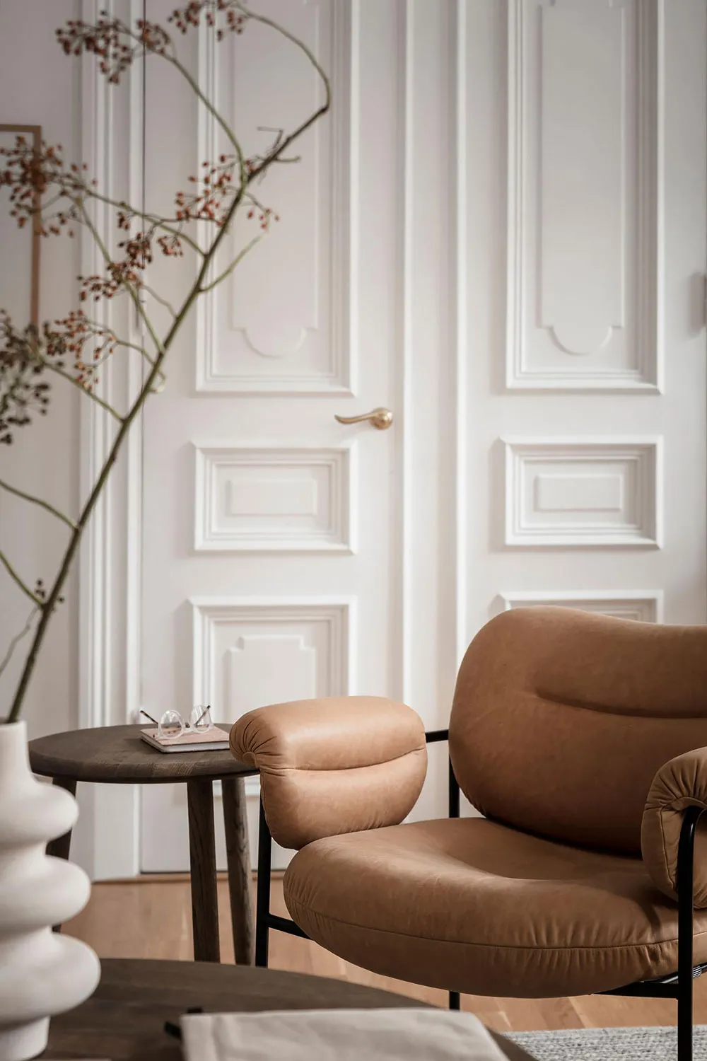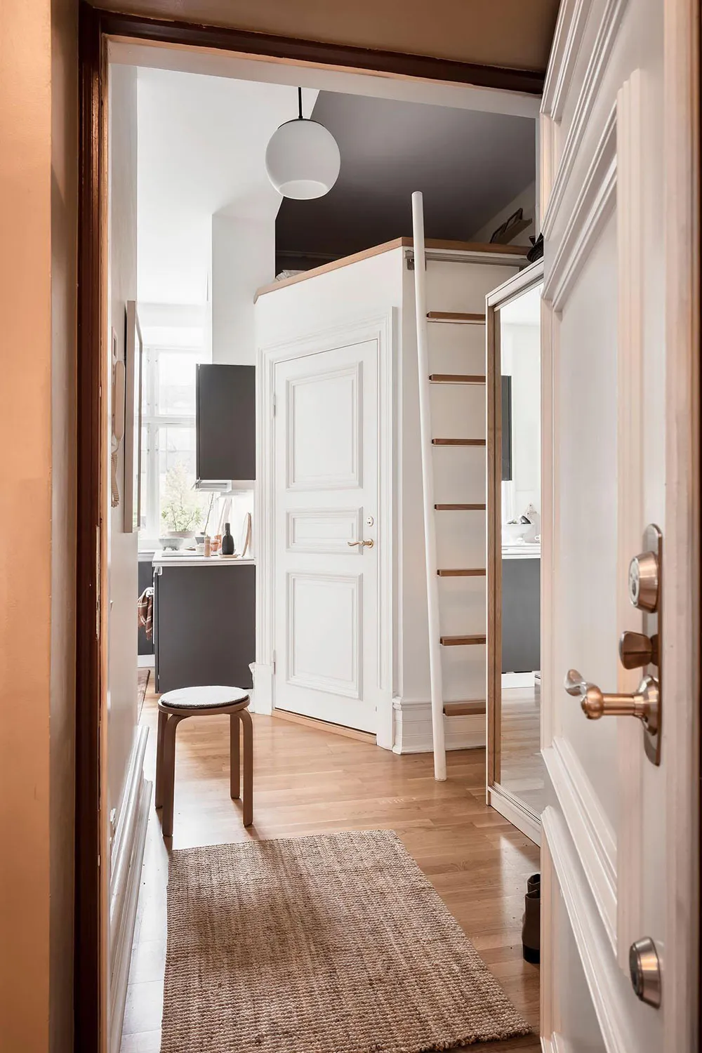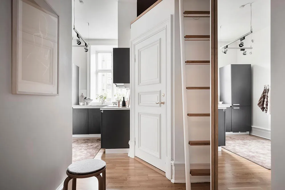 Lorsque vous voyez le salon lumineux et ouvert de cet appartement suédois aux hauts plafonds et décorations, il semble que ce soit un vaste appartement avec plusieurs grandes pièces dans un style classique.