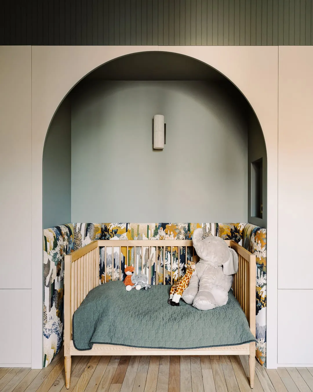 Salle de séjour douce et chambre verte : appartement à Géteborg (60 m²)