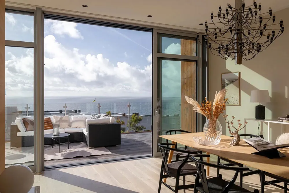Cet appartement moderne en Suède a été conçu avec un seul objectif : offrir à ses propriétaires les meilleures vues sur la mer, située à quelques centaines de mètres seulement de l'habitation.