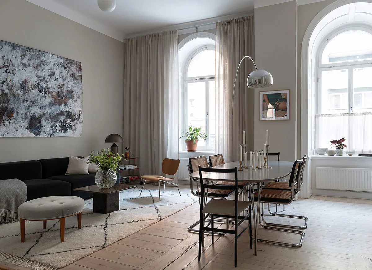 Intérieur impressionnant à Stockholm avec des fenêtres en arc