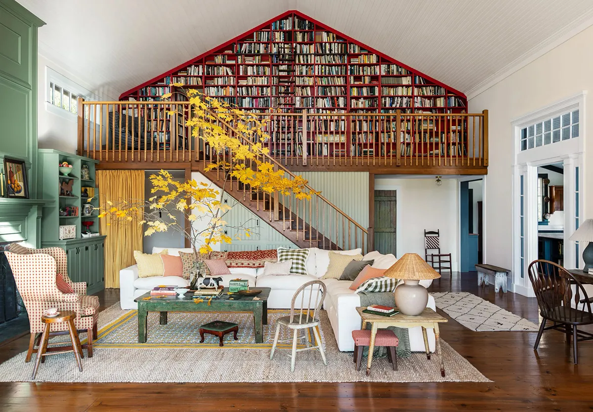 Bibliothèque luxueuse dans l'intérieur d'une maison de campagne confortable dans l'État de New York