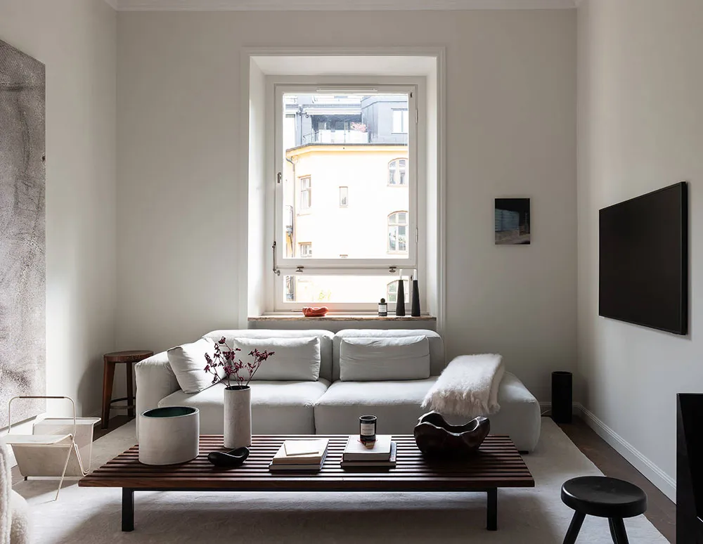 L'intérieur de ce petit appartement de deux pièces à Stockholm est conçu dans le style minimaliste, mais grâce à quelques légères touches, les designers y ont ajouté des notes d'art contemporain.