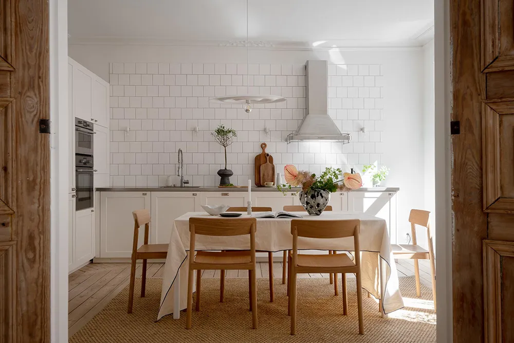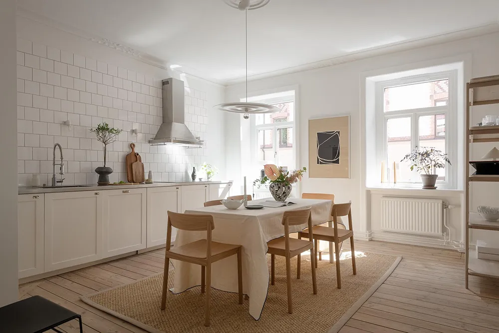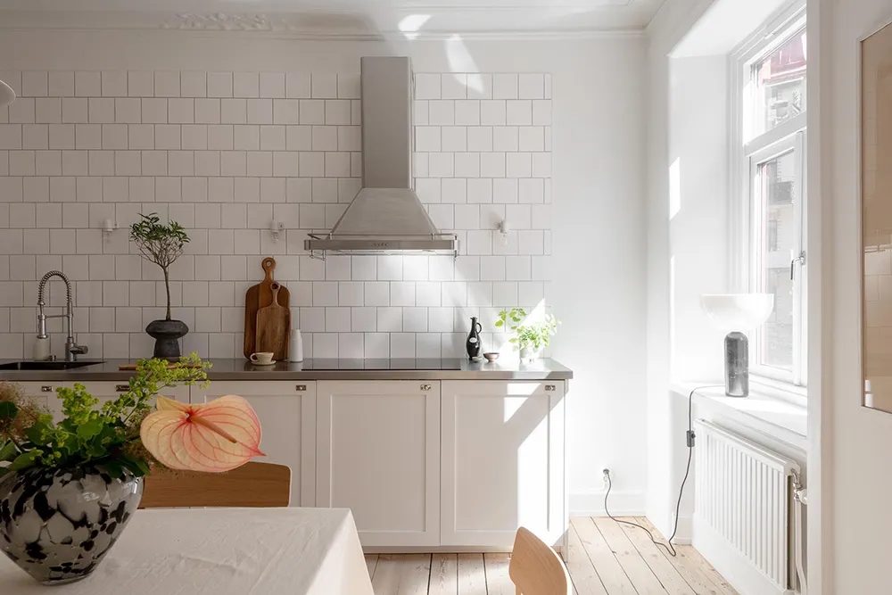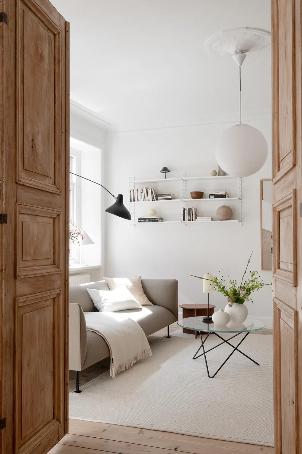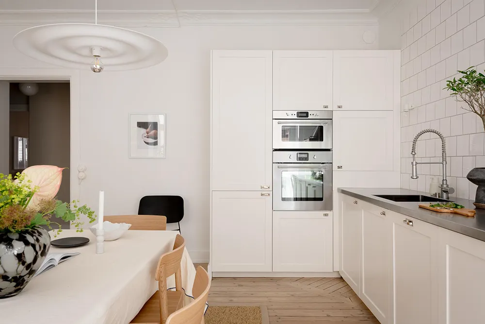 Contrairement à certains préjugés, les murs blancs, en particulier dans les anciens immeubles luxueux aux grandes fenêtres classiques, rendent toujours l'intérieur aérien et inspirant.
