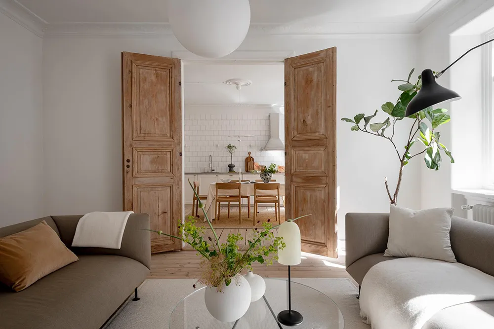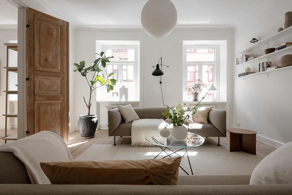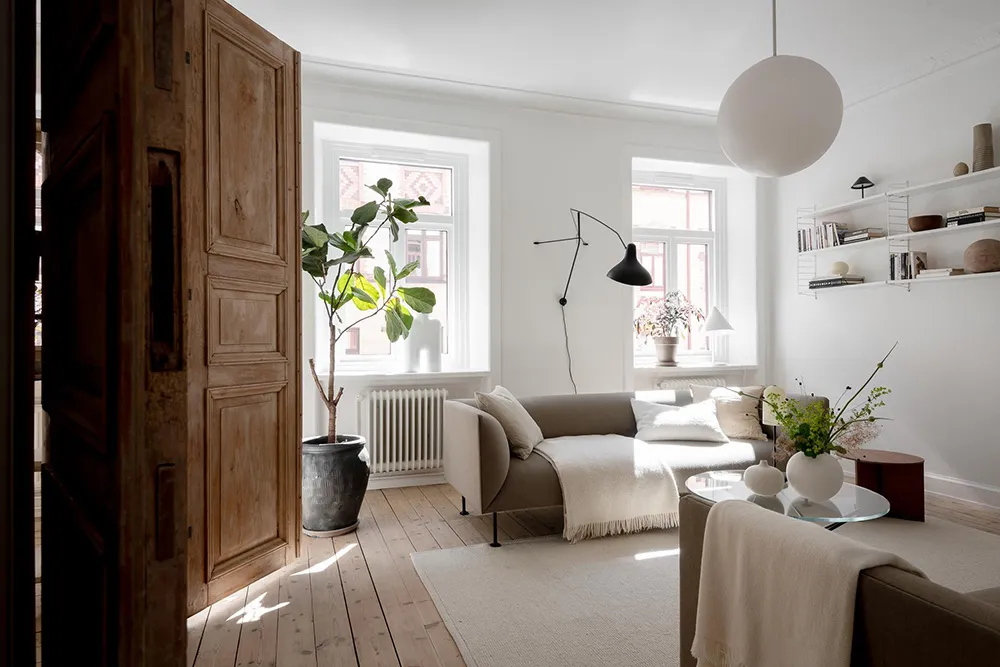 Intérieur scandinave aérien avec décor naturel chaud (89 m²)