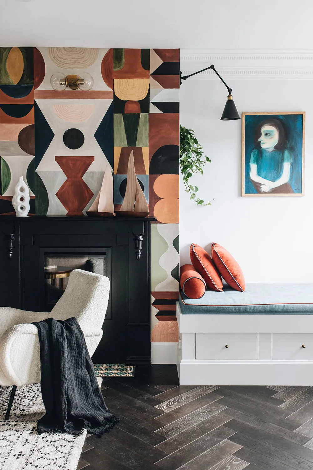 Gamma gamma atmosphérique et décor mural intéressant dans le design d'une maison suédoise