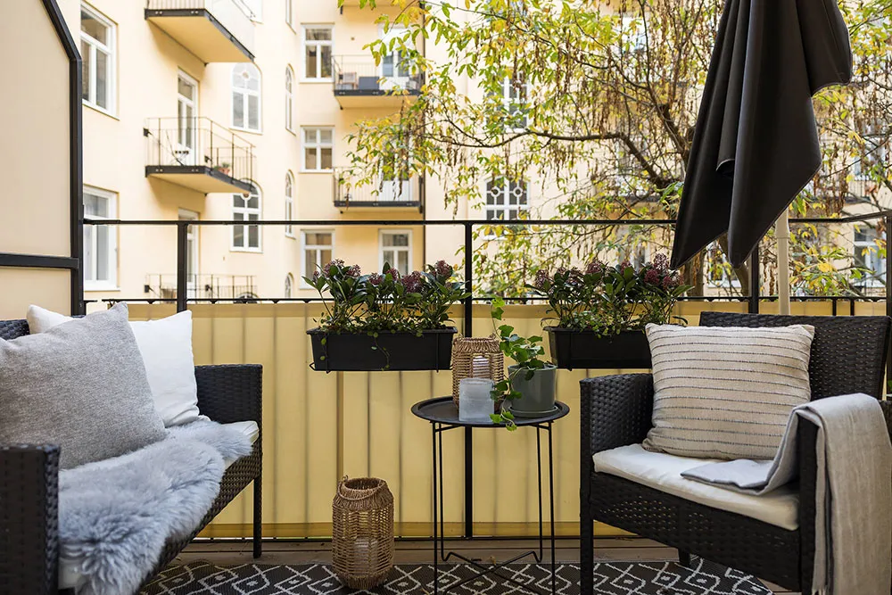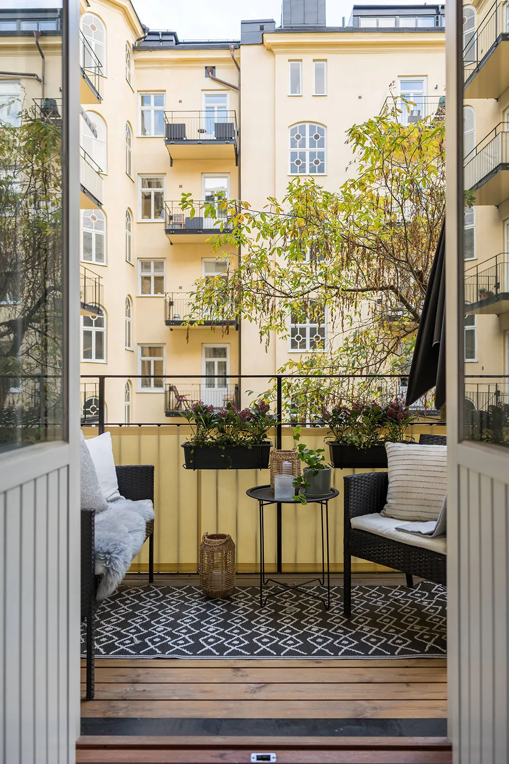 Intérieur scandinave atmosphérique avec plafond foncé (81 m²)