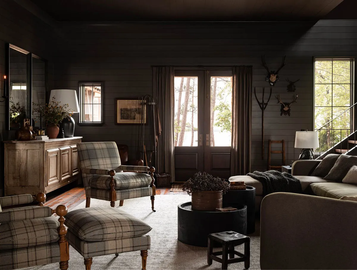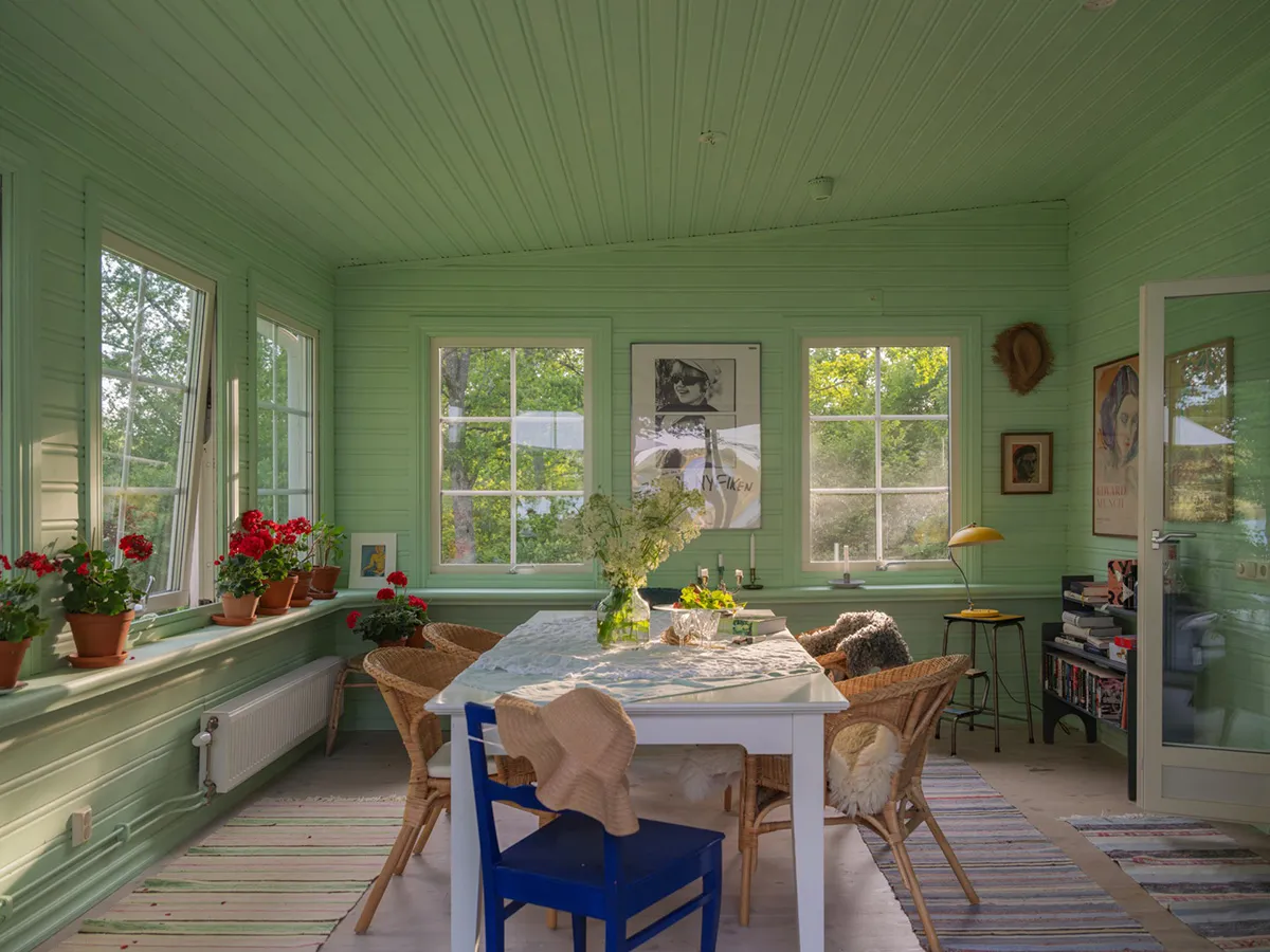 Beaucoup de verdure dans le design d'une maison de camp suédoise au bord du lac