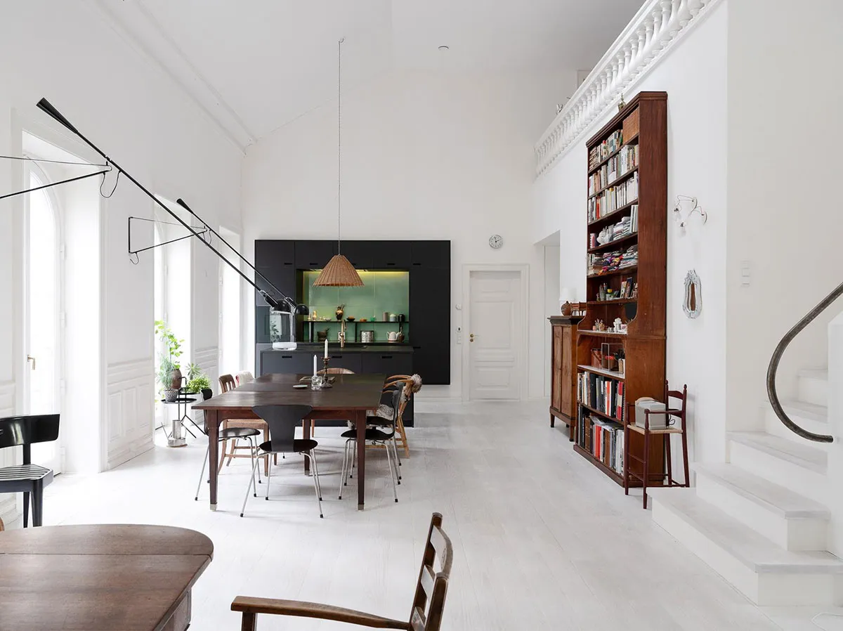 Ce décor intérieur scandinave équilibre parfaitement la classicité et le style moderne.