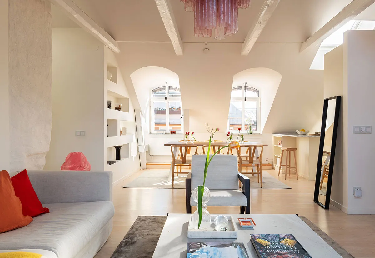 Летние акценты в декоре светлой мансардной квартиры в Стокгольме (70 кв. м)