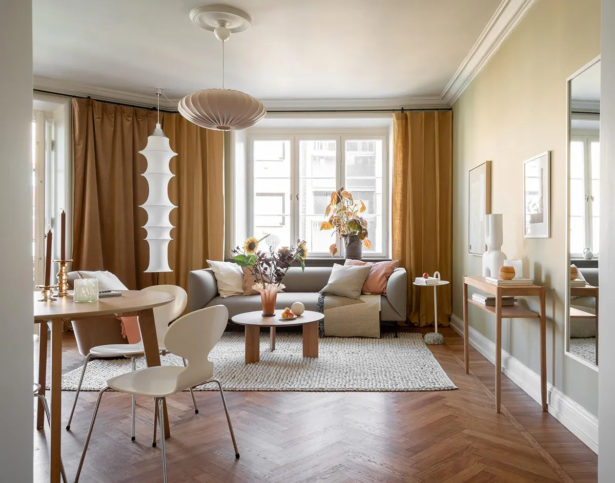 Accents beiges et marrons dans le design scandinave d'une appartement