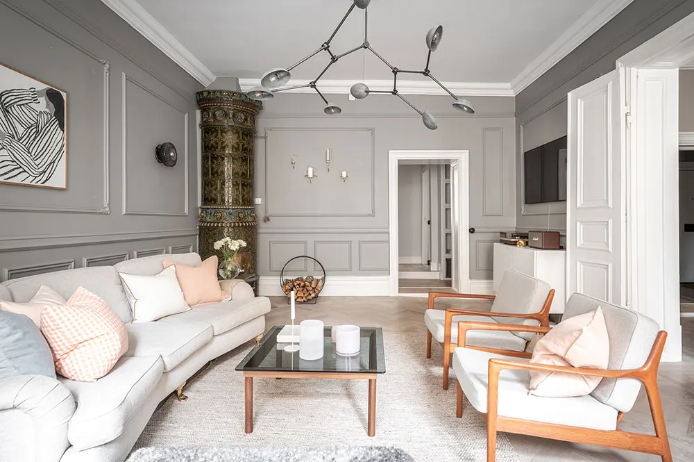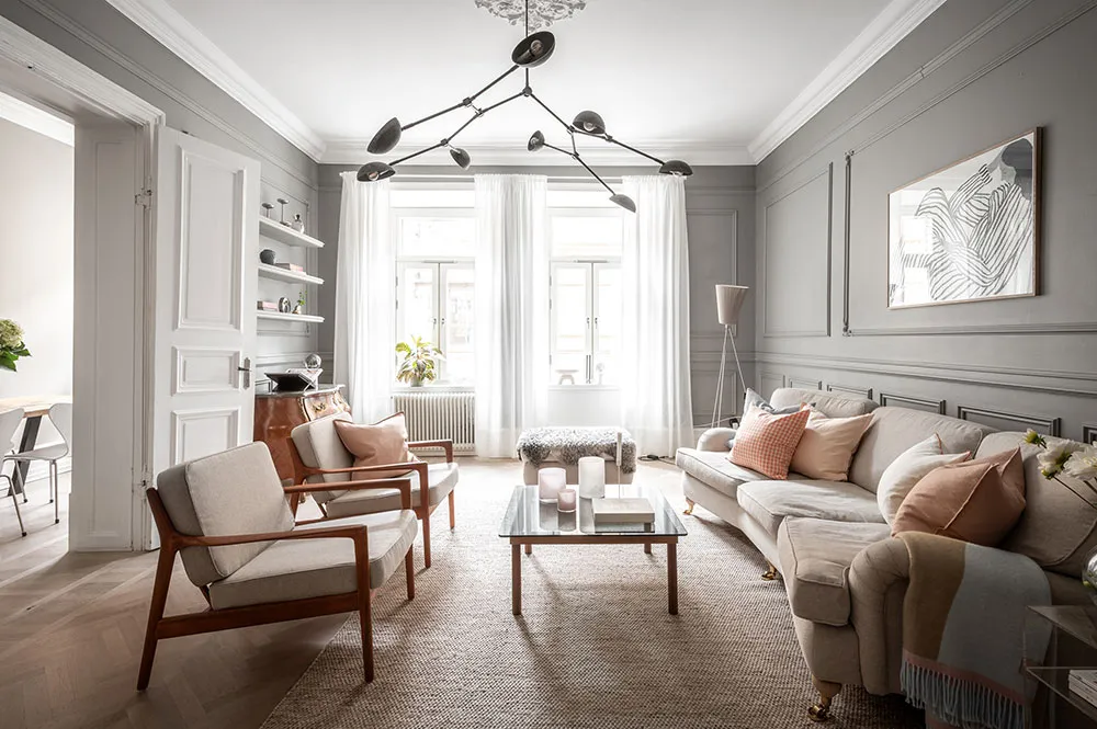 Dans cet appartement suédois, l'élégance d'un intérieur classique se combine parfaitement avec la douceur d'une décoration scandinave moderne.