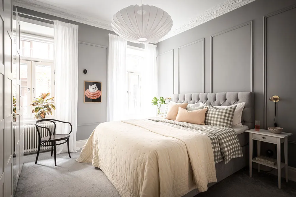 Teintes de gris dans le design d'une appartement raffiné à Goteborg