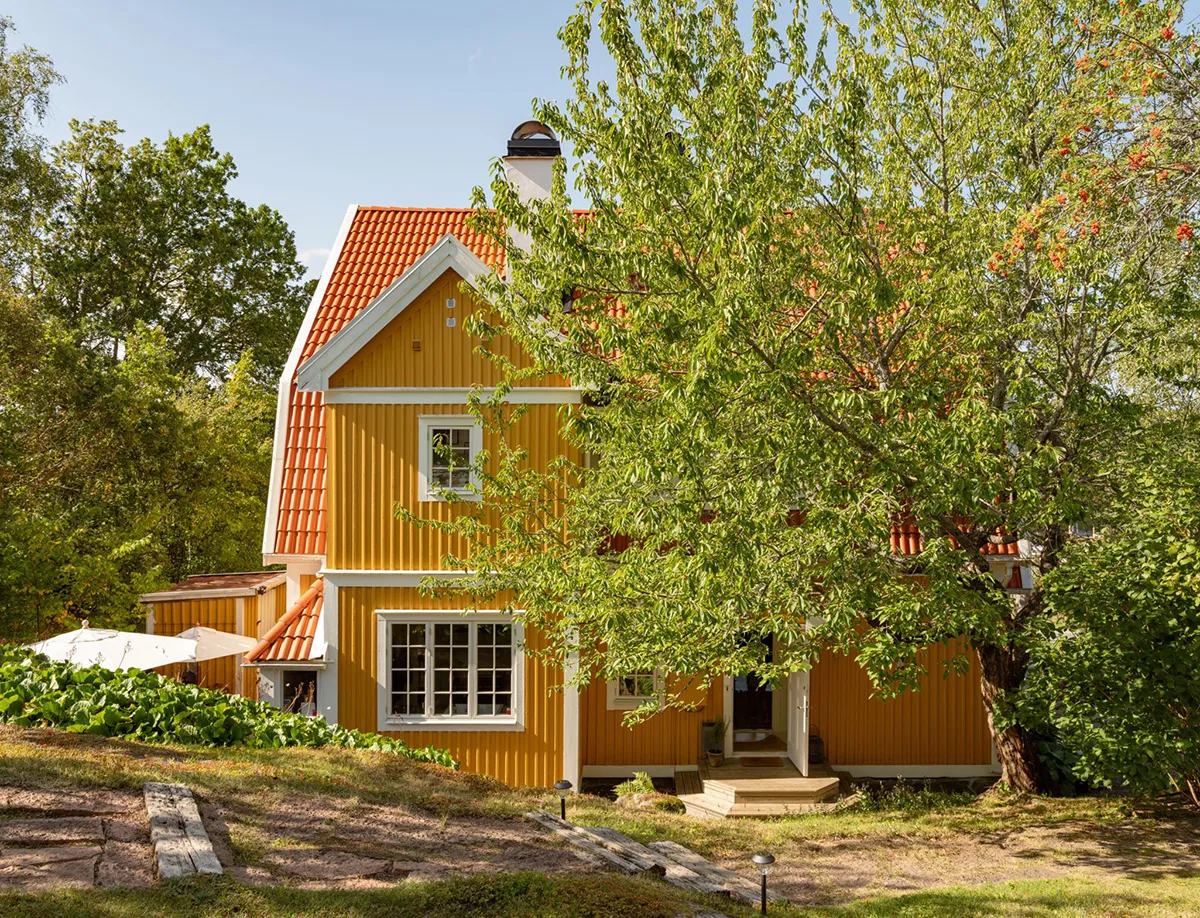 Villa jaune claire en Suède avec intérieurs lumineux