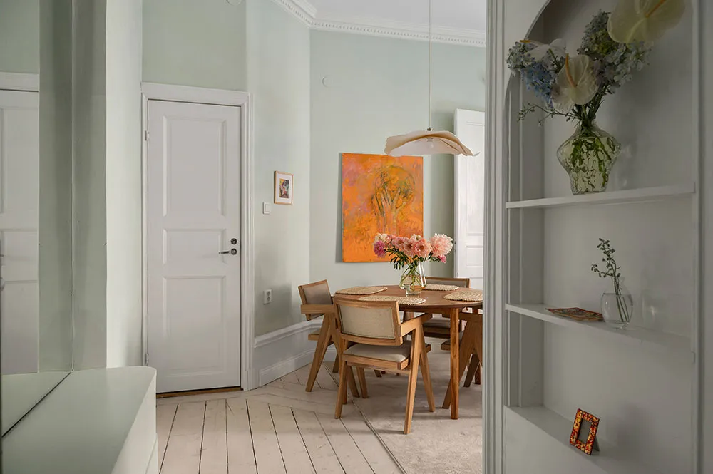Petite appartement à thème menthe en Suède (36 m²)