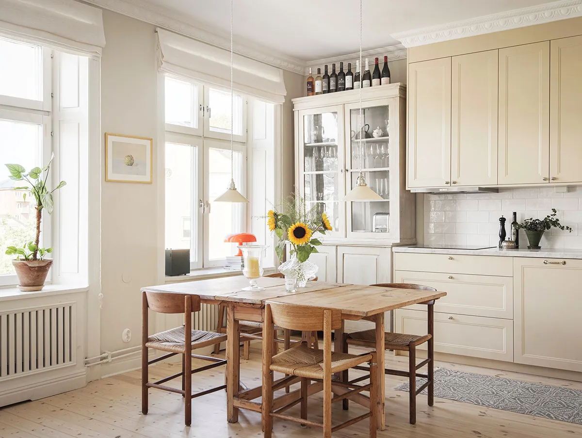 Villa jaune claire en Suède avec intérieurs lumineux