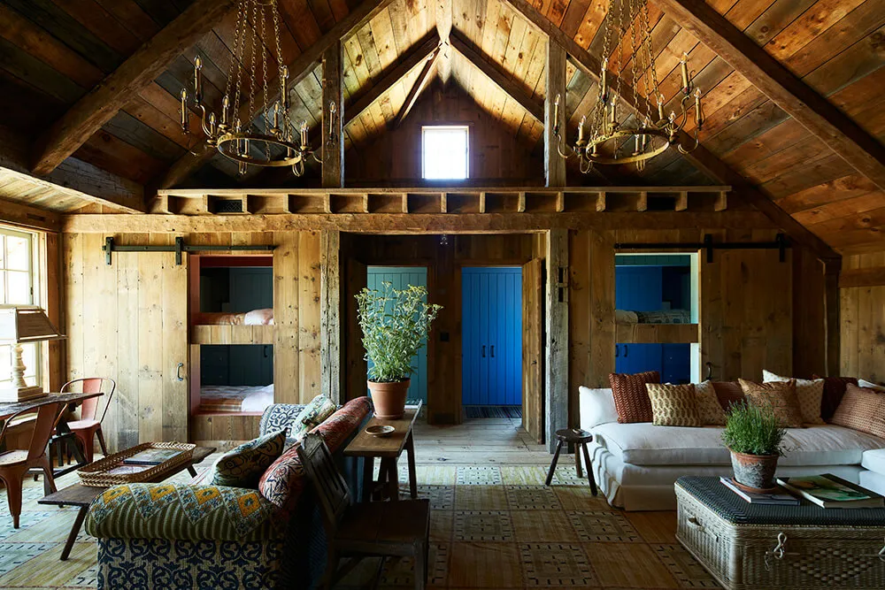 Décoration audacieuse dans les intérieurs chaleureux d'un ancien granier à Connecticut