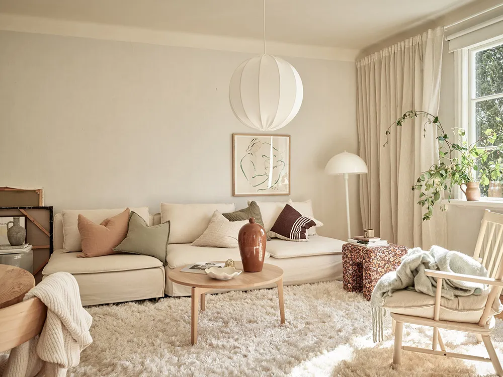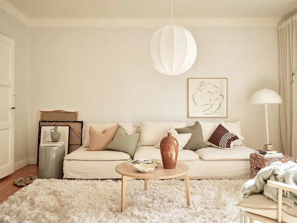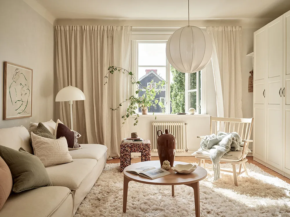 Abondance de textiles et de lumière naturelle dans le design d'un appartement calme à Gotenborg (57 m²)