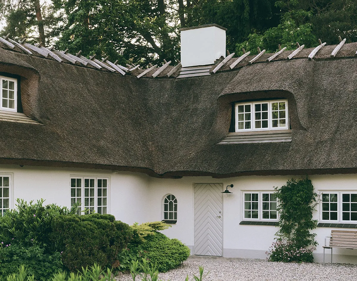 Intérieurs esthétiques d'une maison traditionnelle à toiture de paille au Danemark