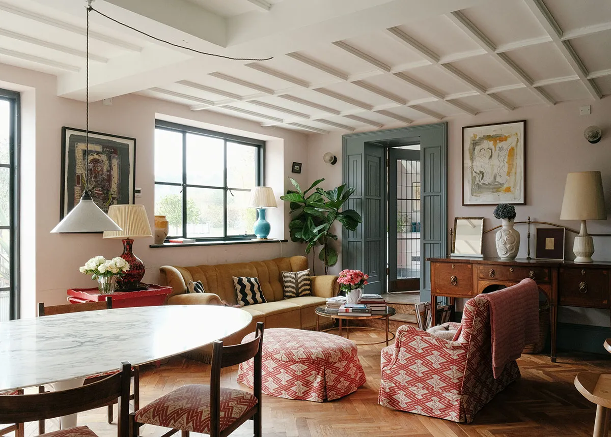 Intérieurs chics et confortables d'un ancien hangar en Angleterre