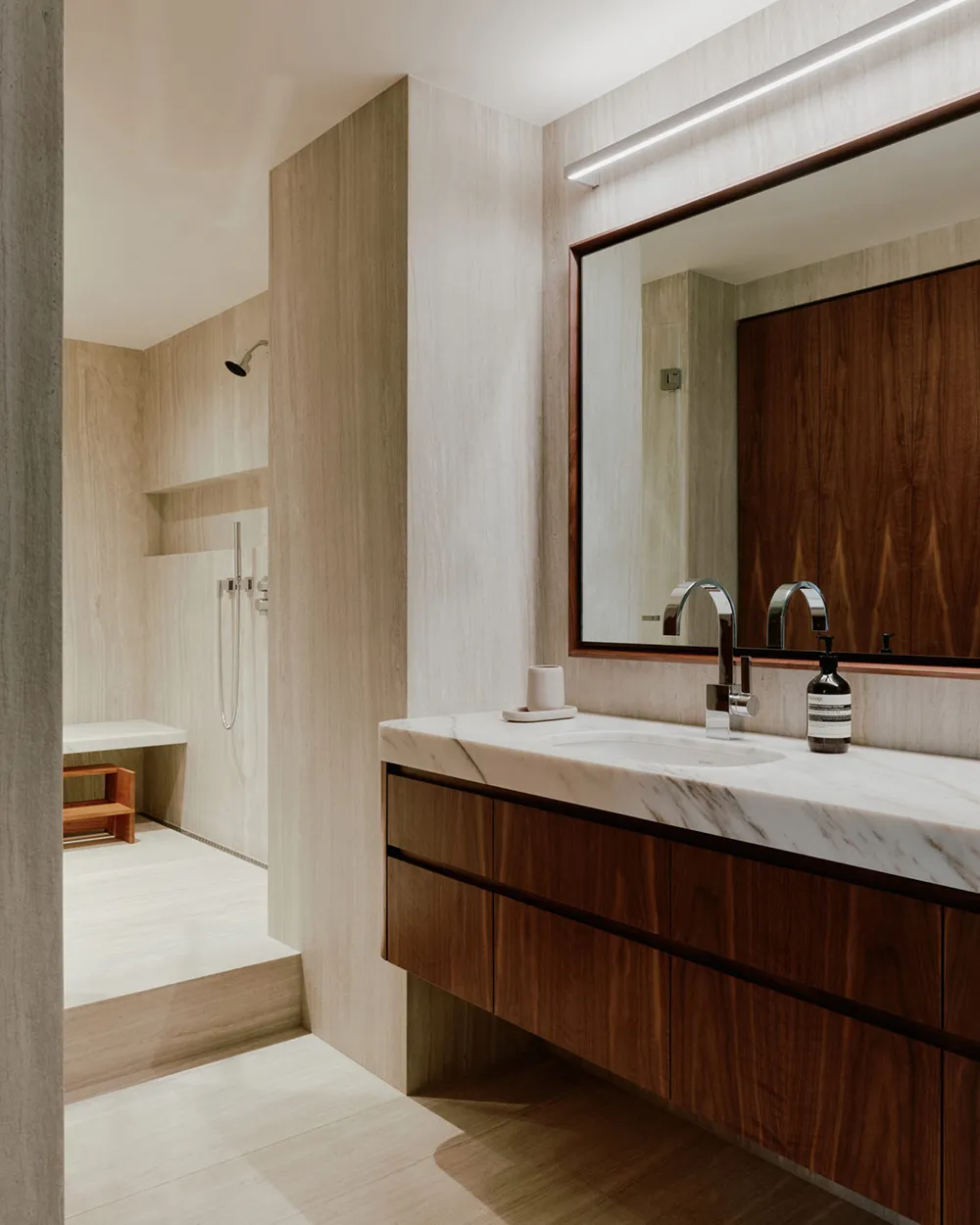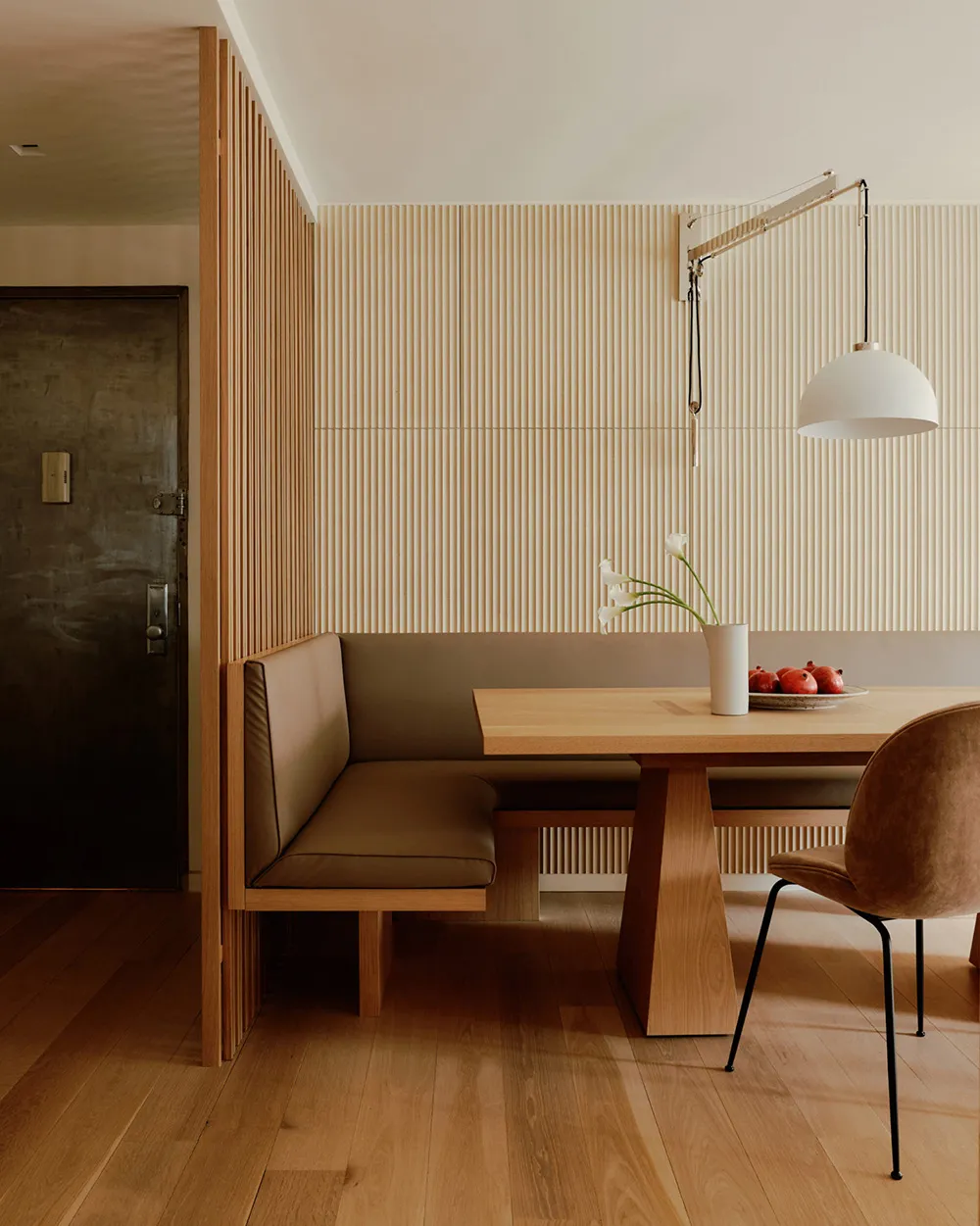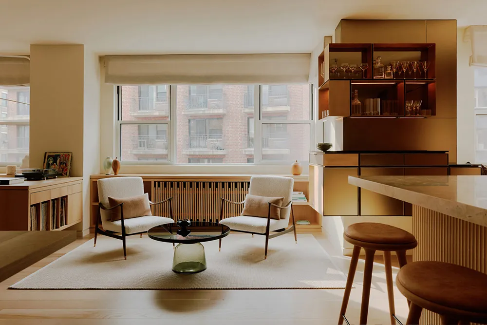 L'intérieur de cet appartement moderne à New York émet une chaleur agréable.