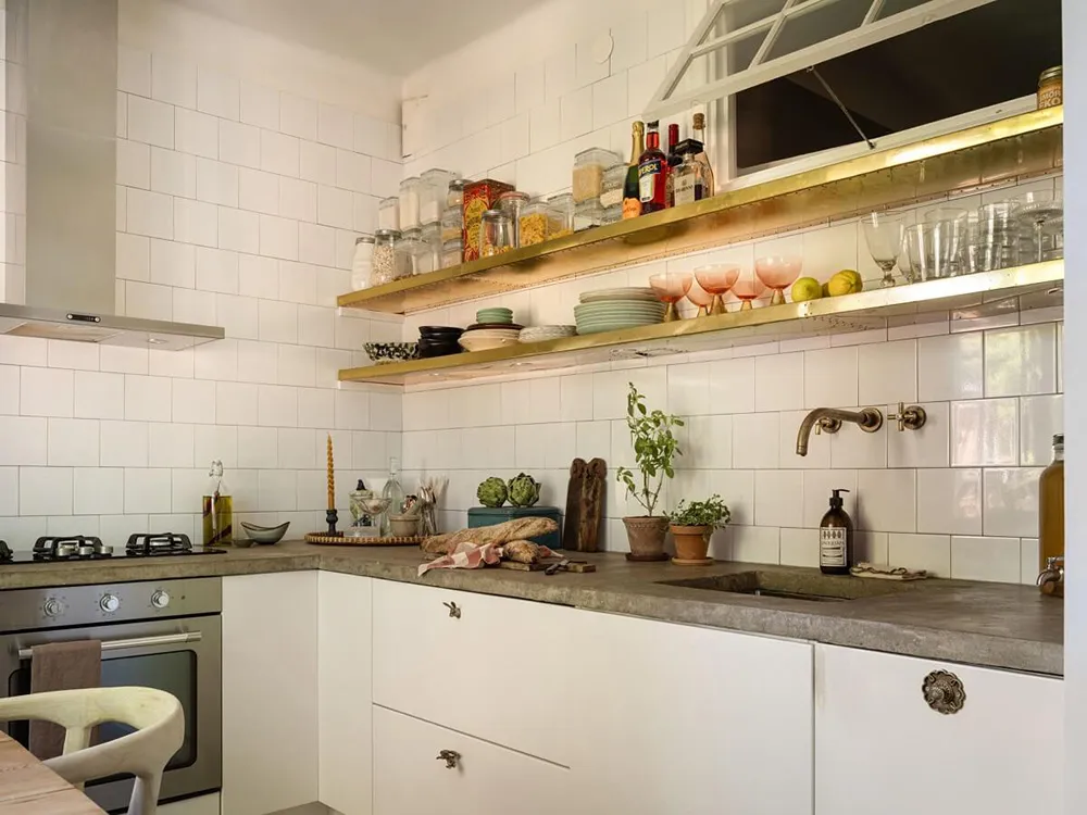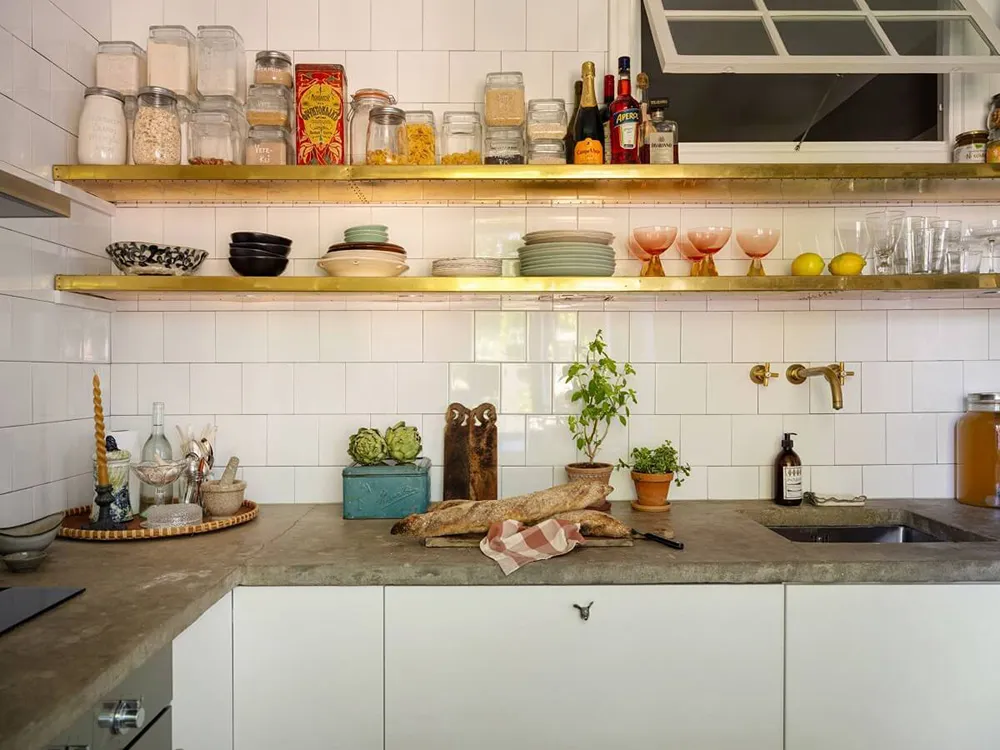 Carrelage jaune et espace ouvert : appartement dans l'ancienne école à Stockholm