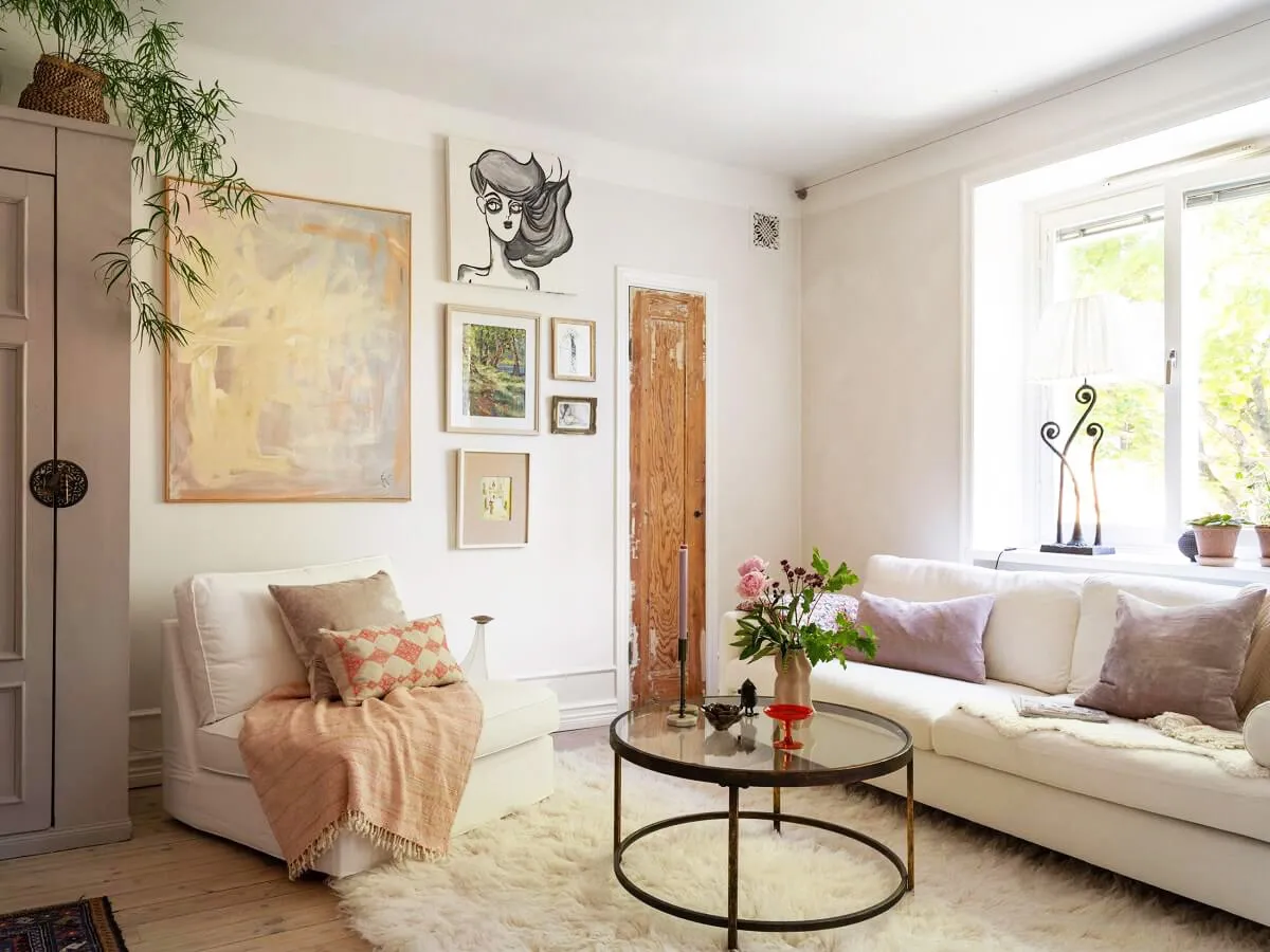 Petite appartement blanc en Suède avec un décor intéressant (40 m²)