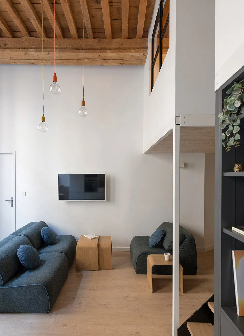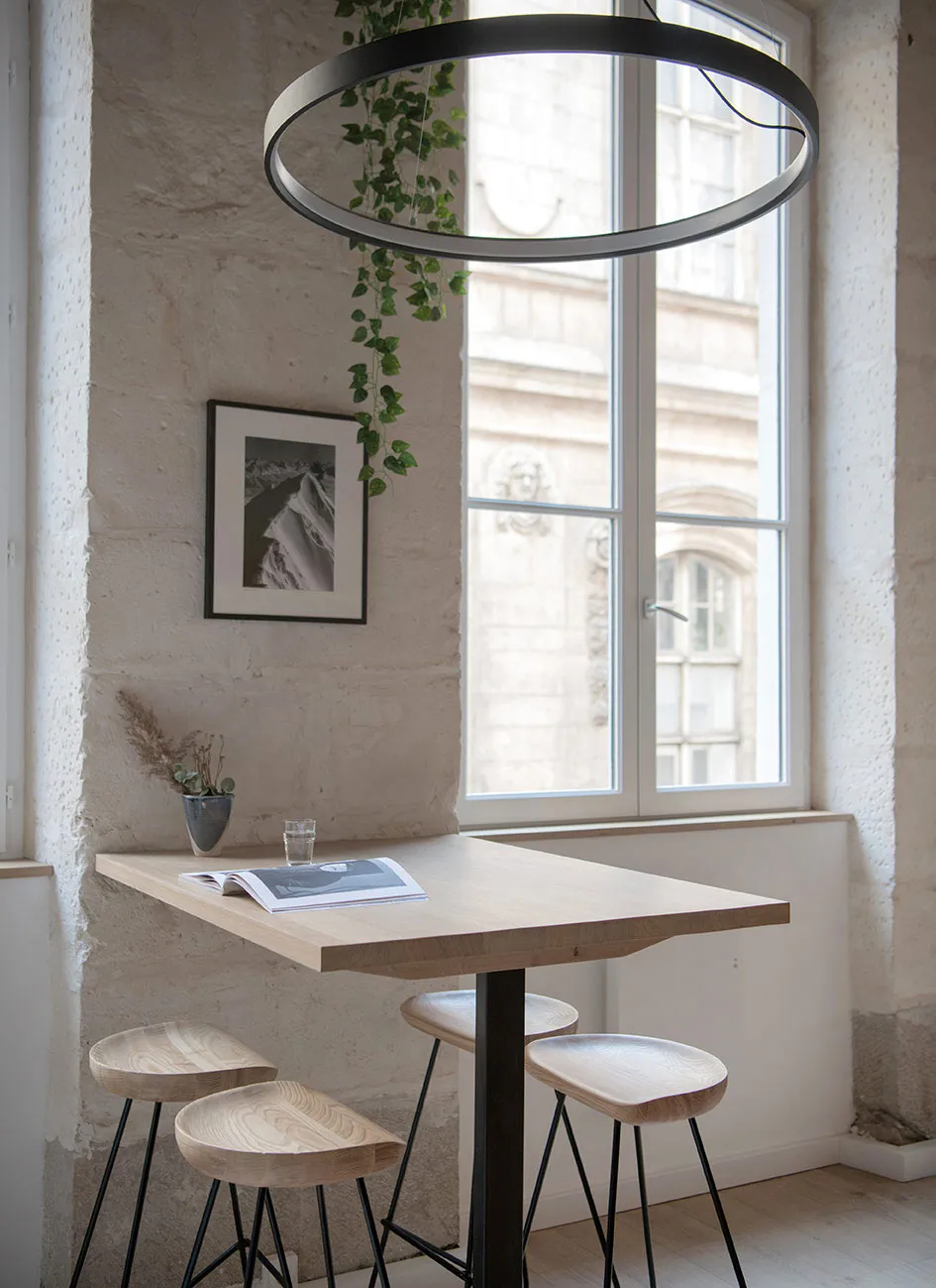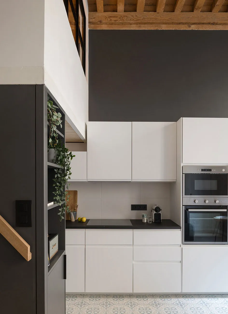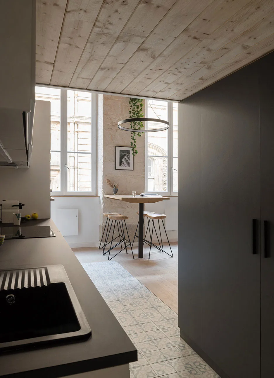 Des plafonds en poutre élégants, d'immenses fenêtres et beaucoup de lumière — déjà avant les travaux, cette appartement à Lyon présentait des atouts impressionnants qui la distinguent favorablement par rapport aux autres.