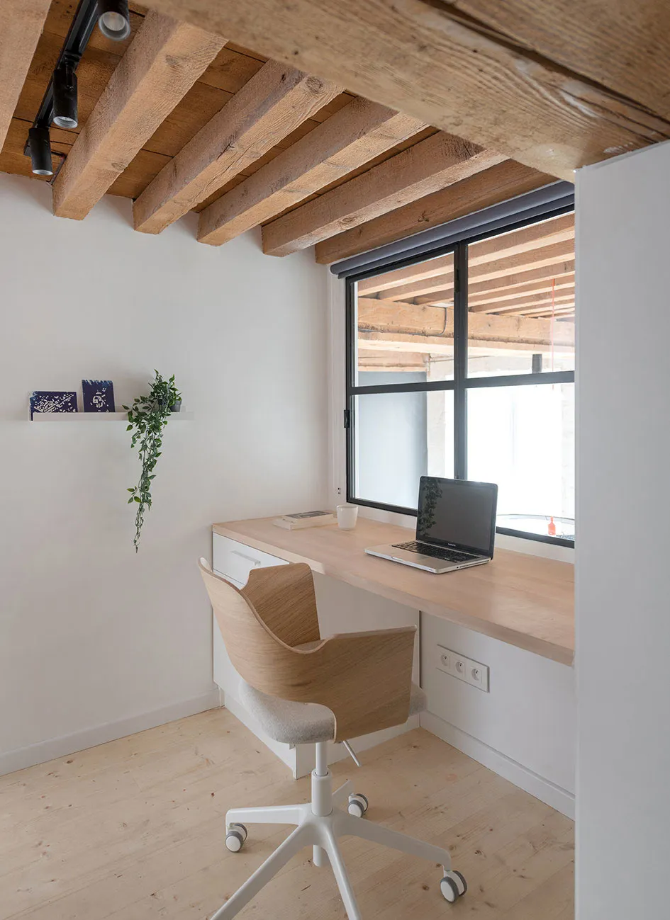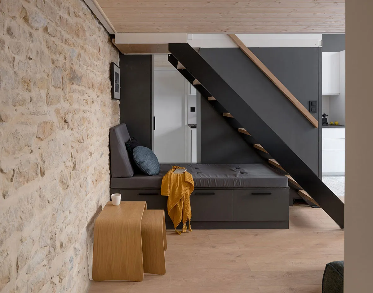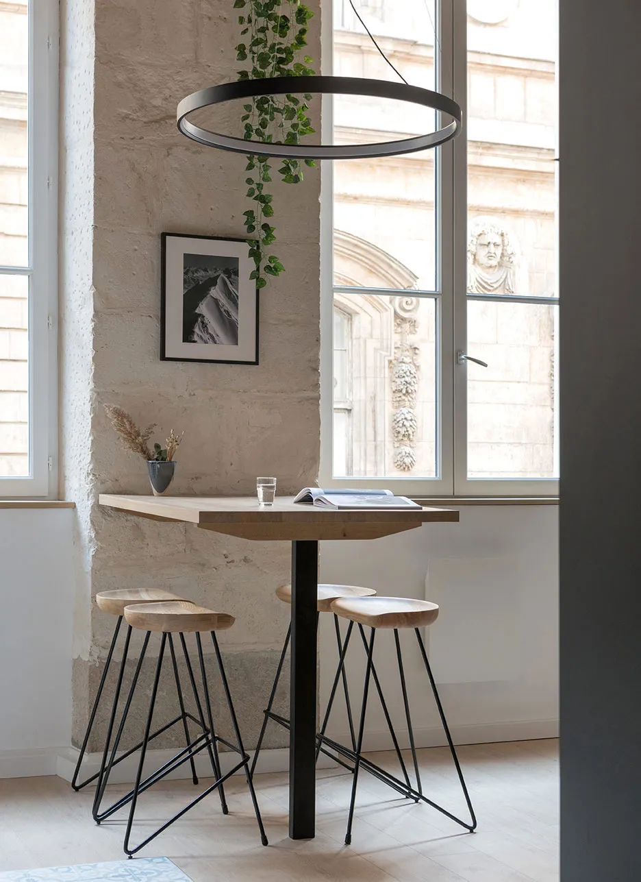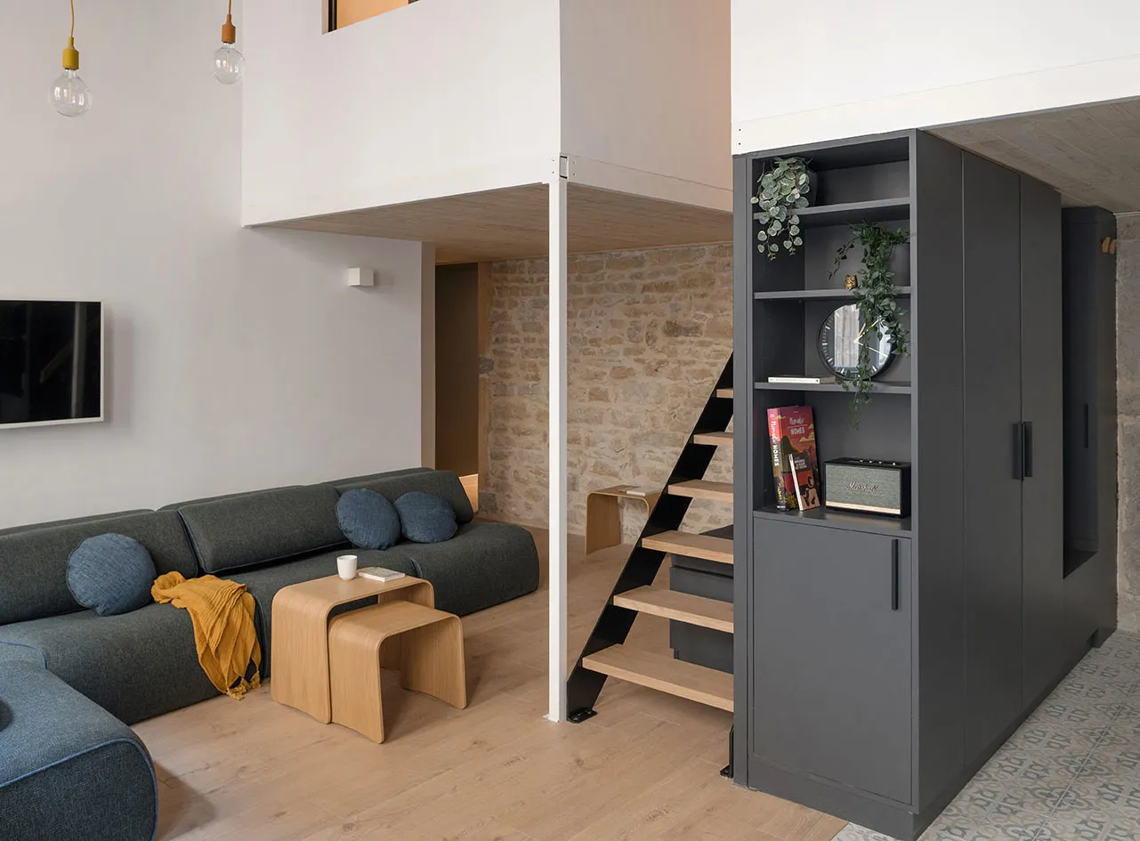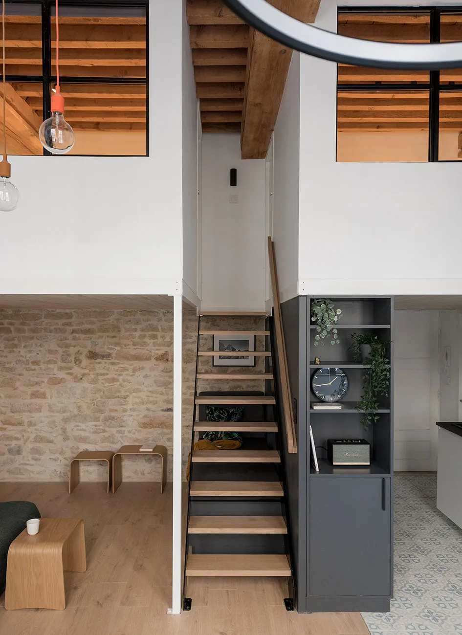 Des plafonds en poutre élégants, d'immenses fenêtres et beaucoup de lumière — déjà avant les travaux, cette appartement à Lyon présentait des atouts impressionnants qui la distinguent favorablement par rapport aux autres.