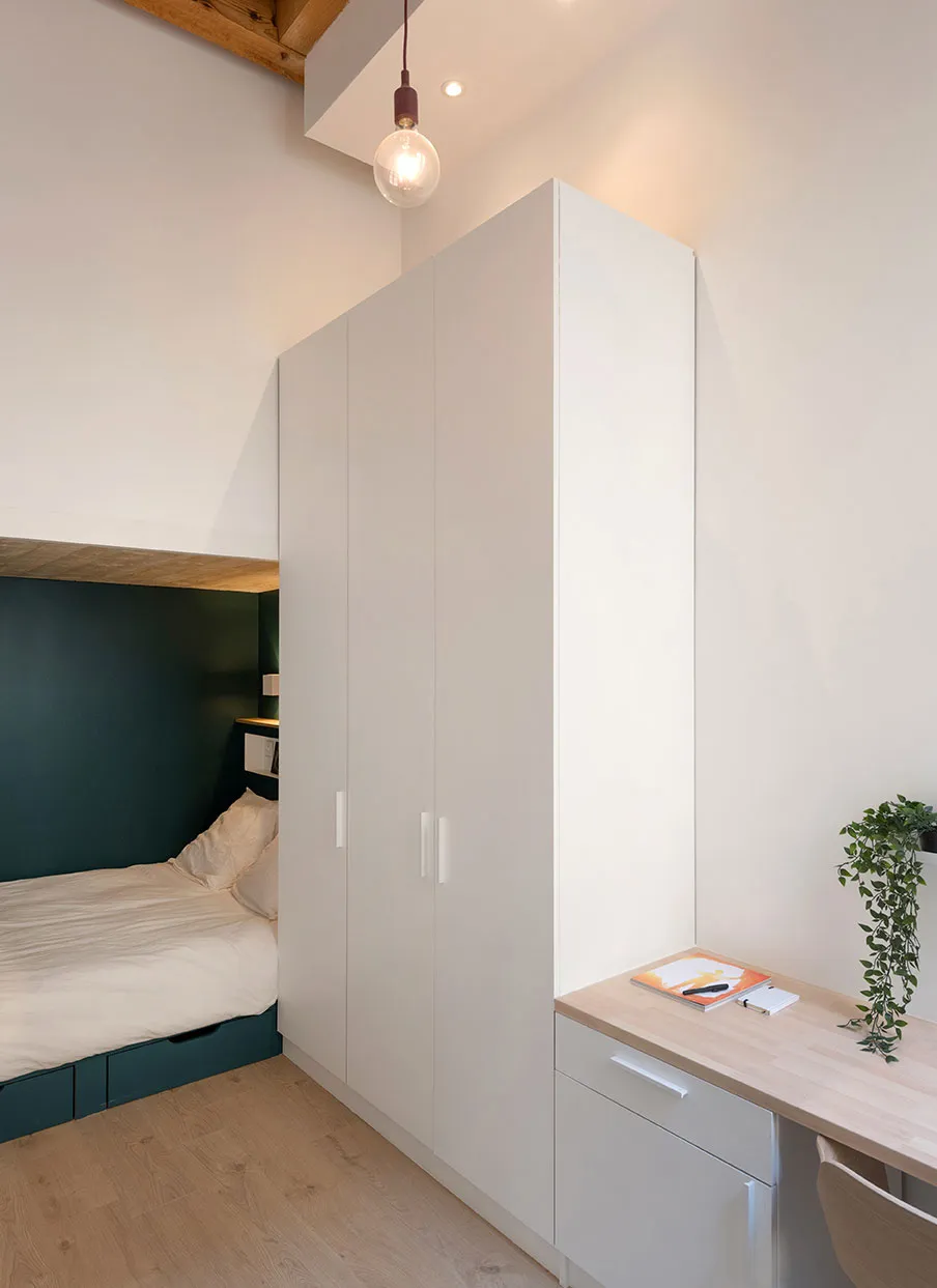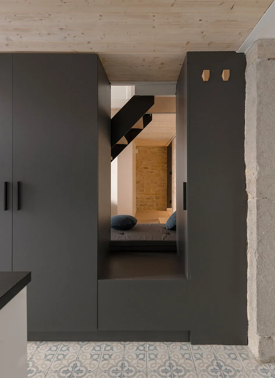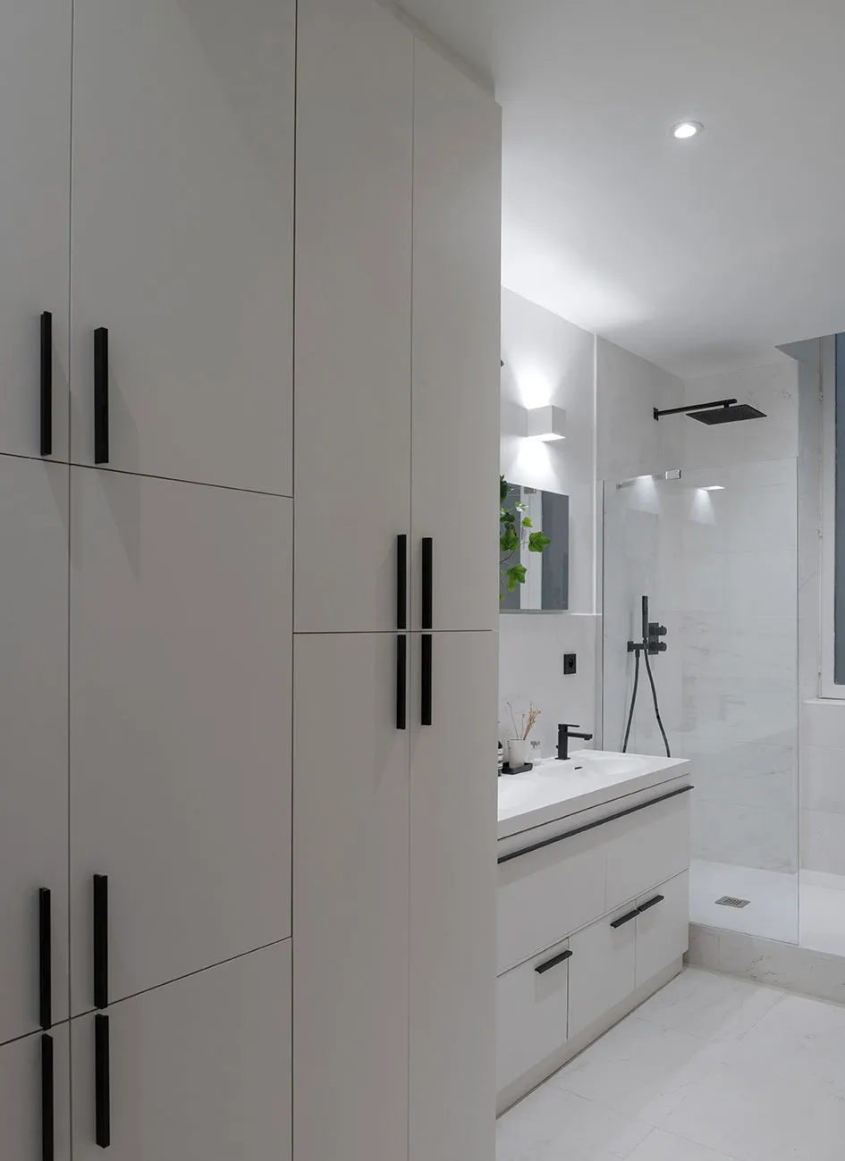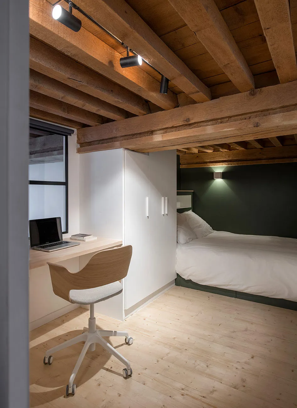 Des plafonds en poutre élégants, d'immenses fenêtres et beaucoup de lumière — déjà avant les travaux, cette appartement à Lyon présentait des atouts impressionnants qui la distinguent favorablement par rapport aux autres.