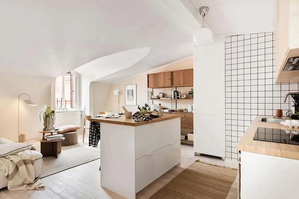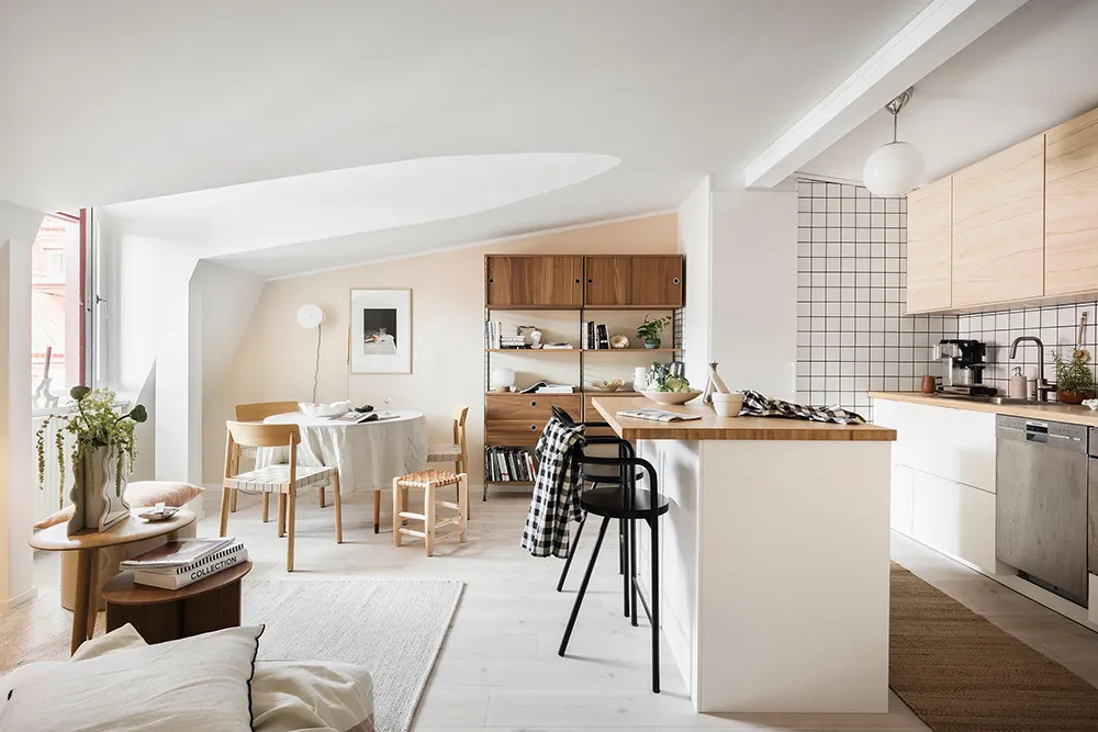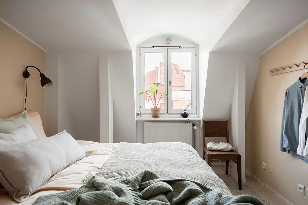 Intérieur simple mais cosy d'une petite mansarde en Suède (46 m²)