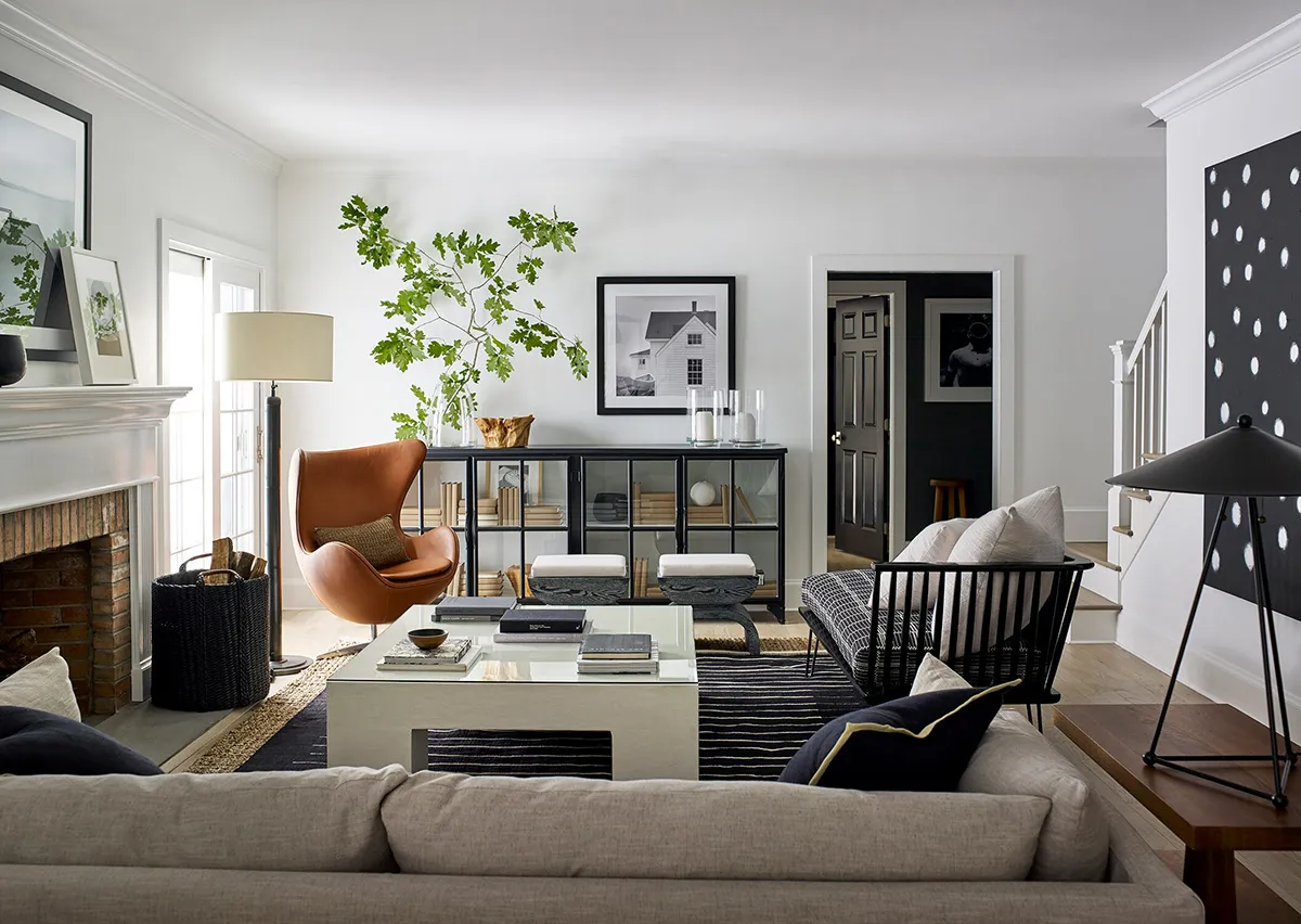 Styles blancs et noirs pour un intérieur de maison de campagne sur Long Island