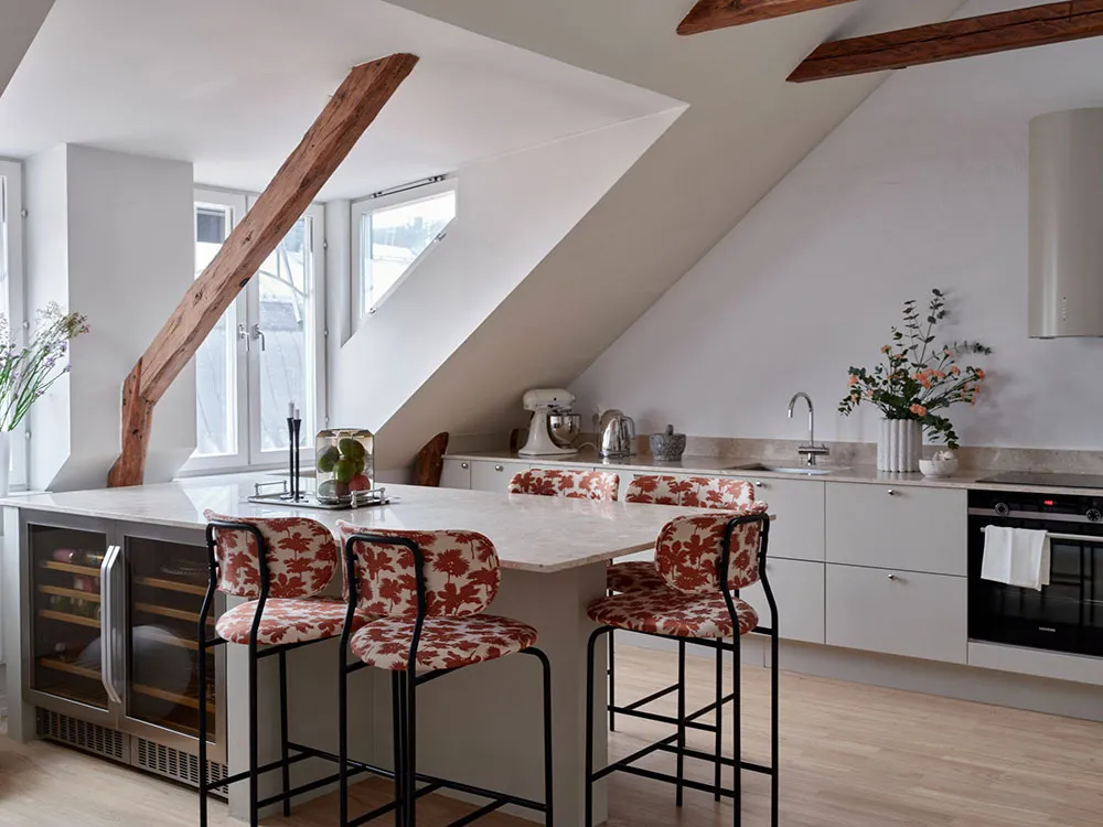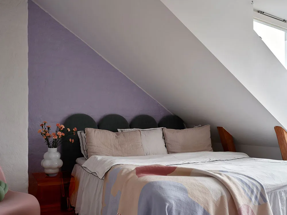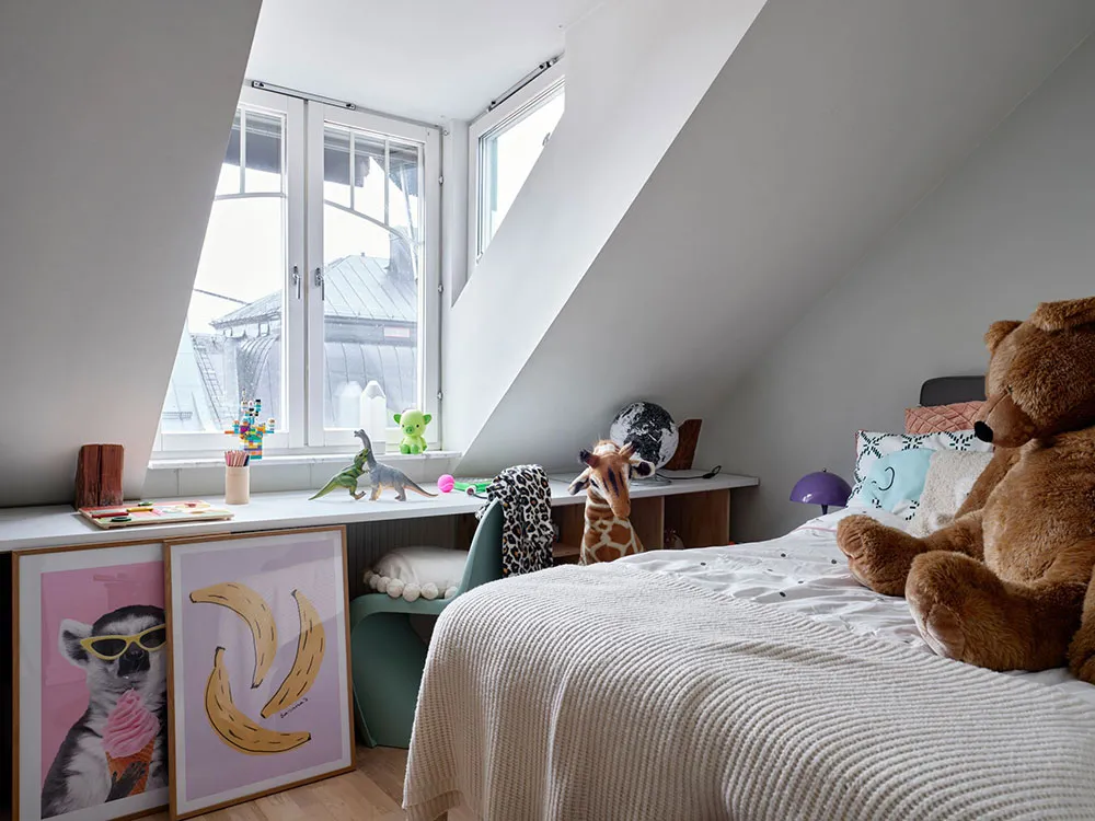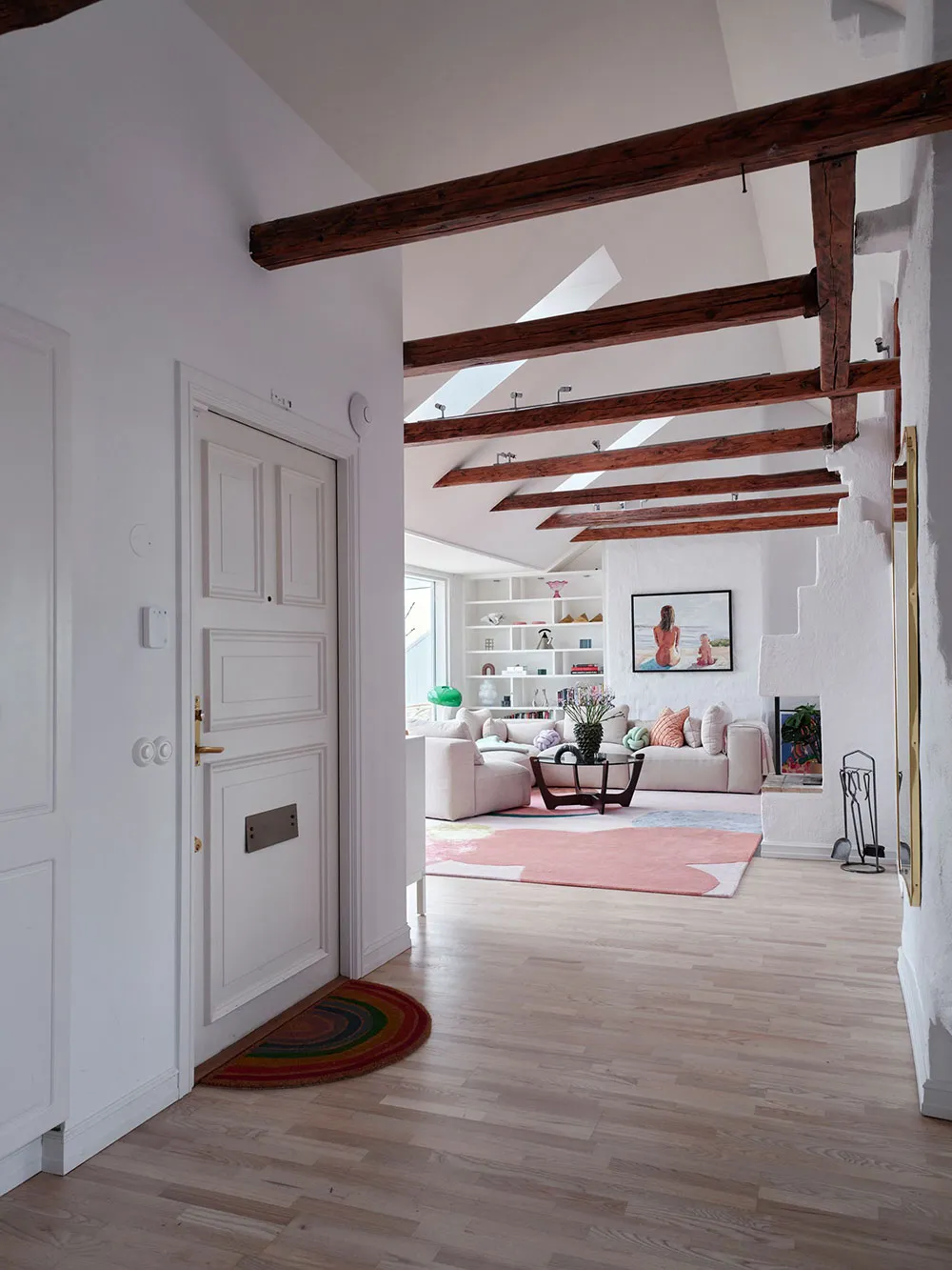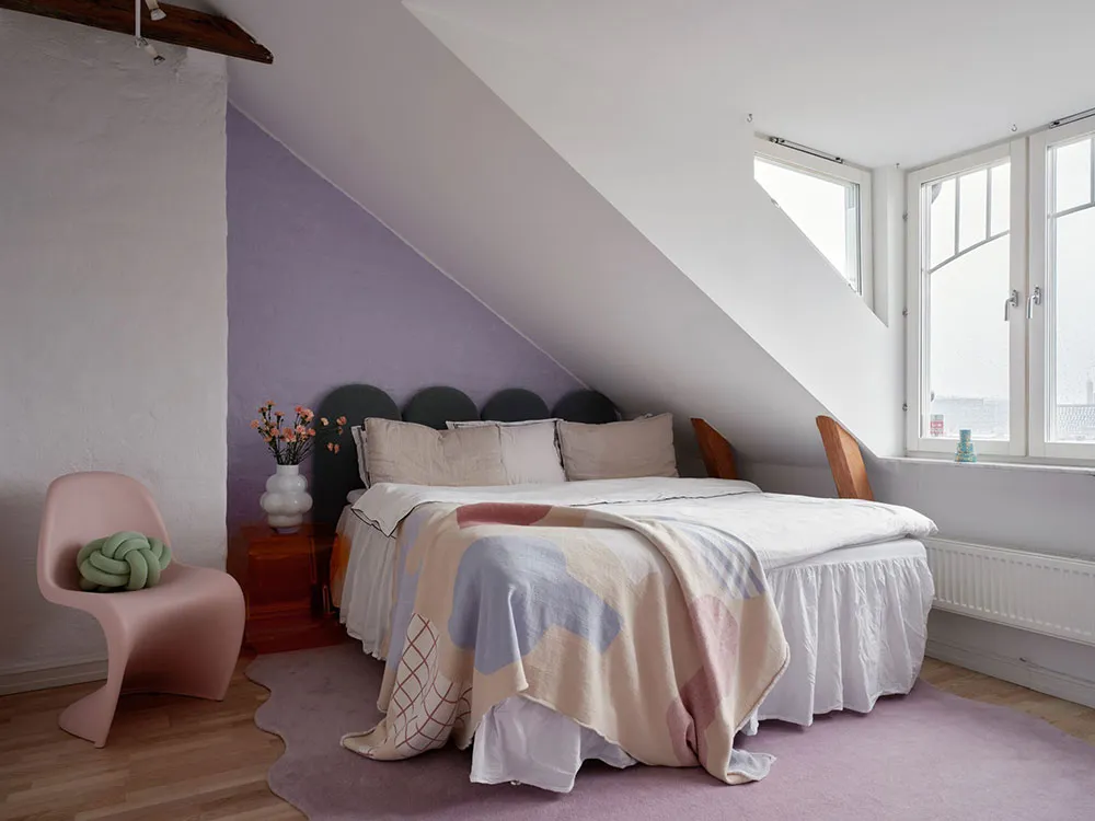 Cette spacieuse mansarde située à Göteborg a un caractère féminin très marqué.