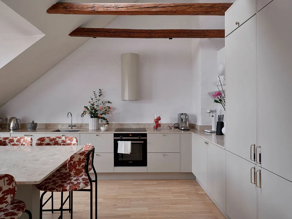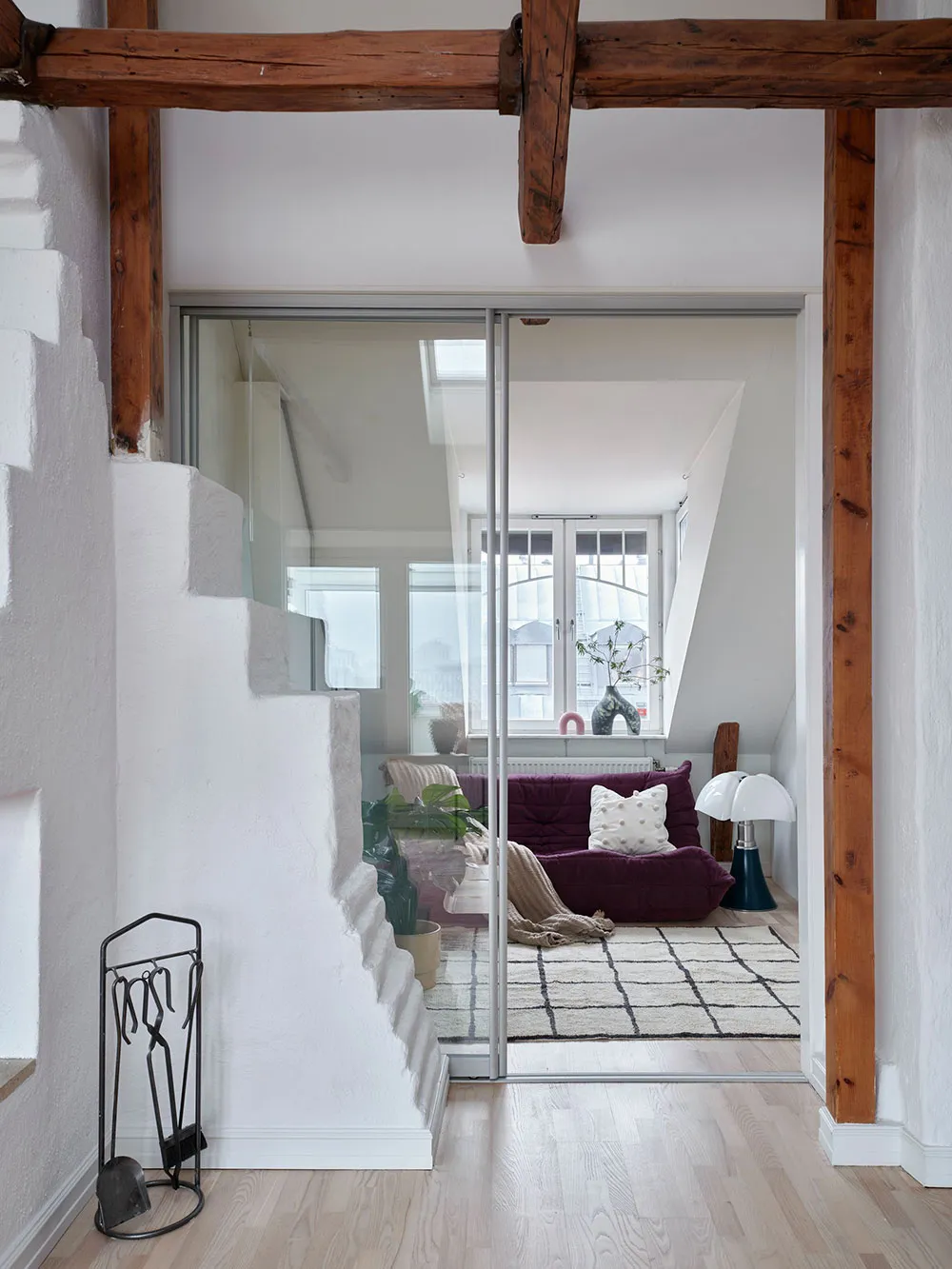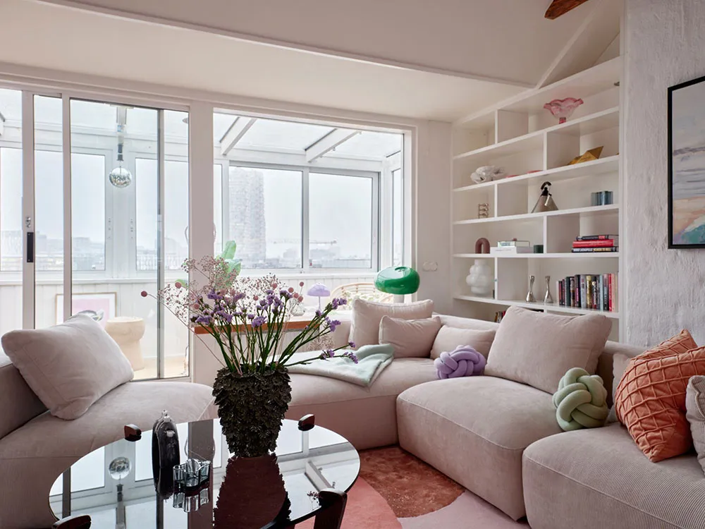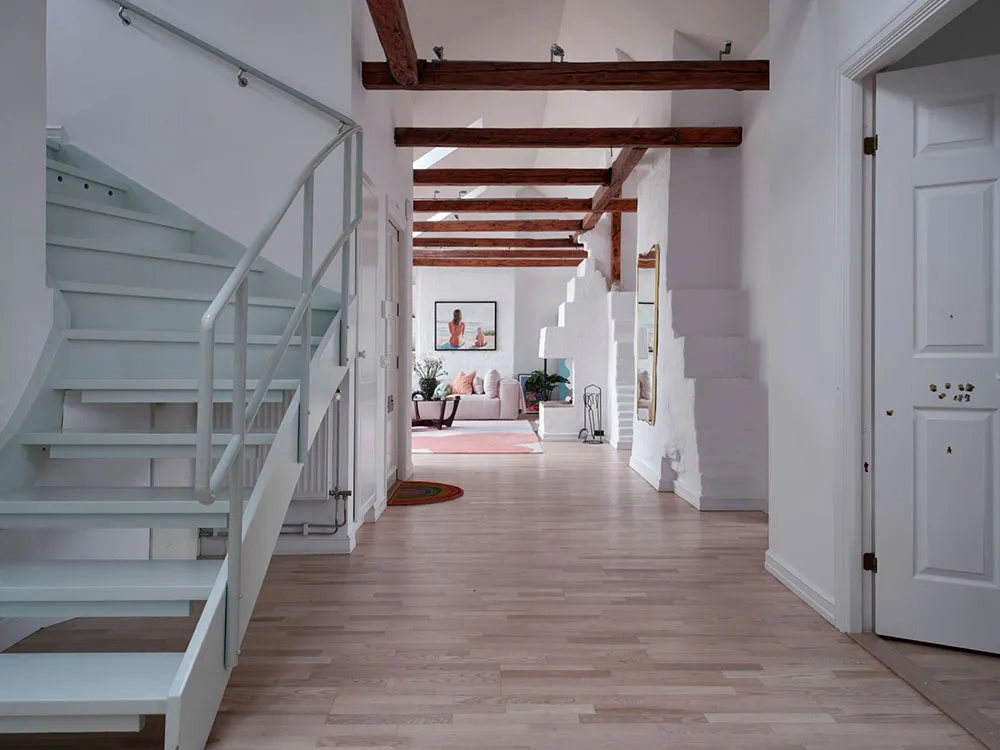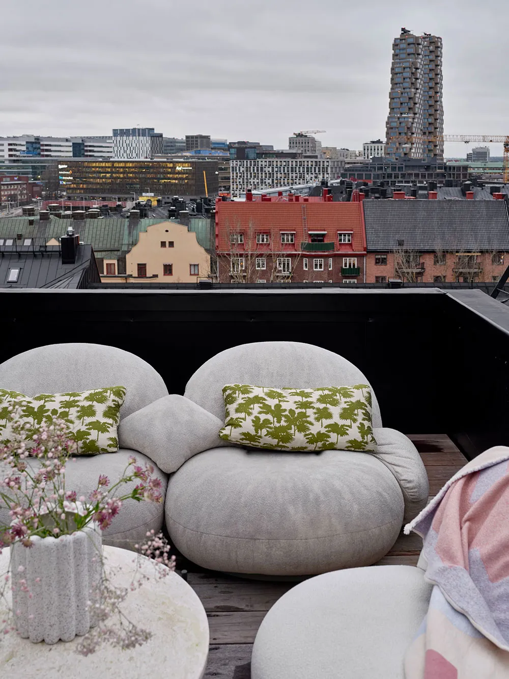 Cette spacieuse mansarde située à Göteborg a un caractère féminin très marqué.