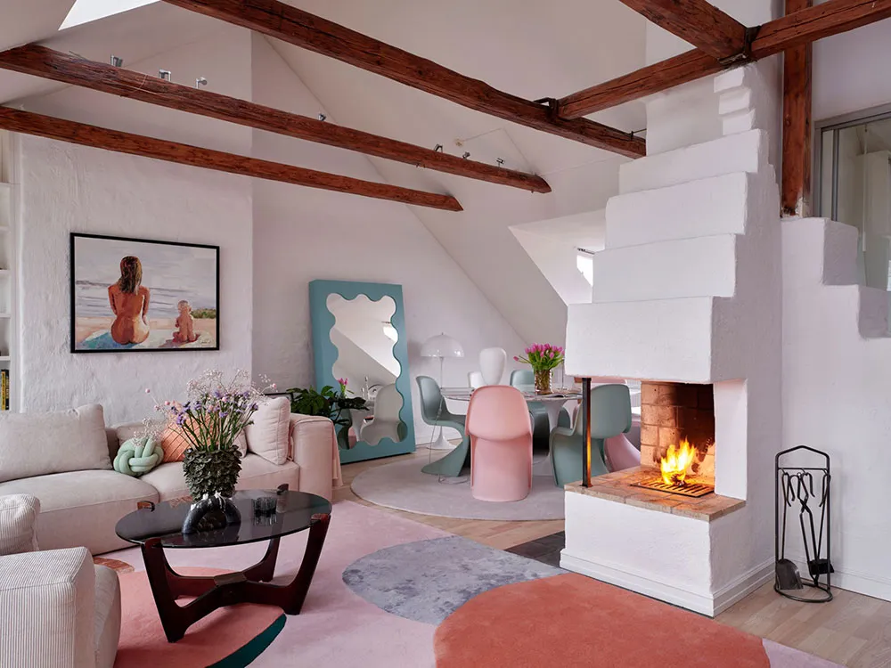 Intérieur coloré d'une appartement dans le centre historique d'Oslo
