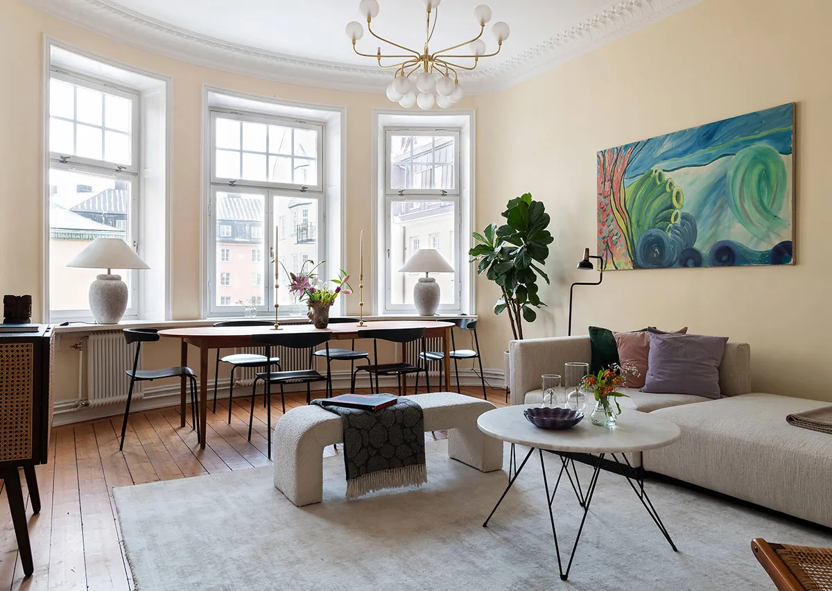 Appartements spacieux à Stockholm avec décor raffiné et murs en sable